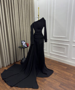 فستان سهرة أسود مطرز – إطلالة ملكية لا تُنسى
