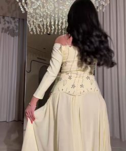 الأكمام الطويلة تضفي إحساساً بالاحتشام بينما تمنحك إطلالة أنيقة. كما أن التنورة المنسدلة تضيف طابعاً ملوكيًا يجعلك تبرزين في أي مناسبة، سواء كانت حفلة، أو عشاء رسمي، أو حتى حفل زفاف.