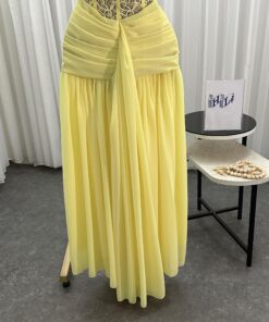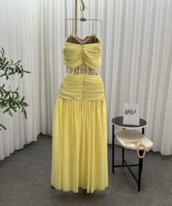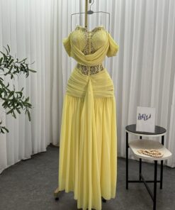 فستان سهرة أصفر دانتيل وشيفون – لمسة من الفخامة