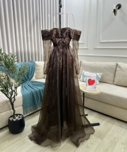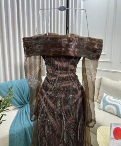 فستان سهرة بأكمام طويلة بتصميم أنيق