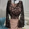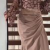 فستان سهرة بلون الشوكولا بتصميم دانتيل فاخر – أناقة لا مثيل لها
