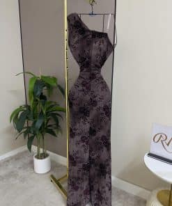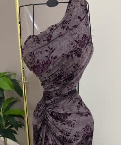 فستان سهرة أنيق كتف واحد بنقشة ورود
