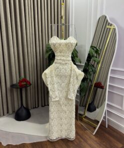 تألقي بإطلالة ملكية مع هذا الفستان الأوف وايت الفخم المطرز بالكامل بتفاصيل لامعة تزيدك أناقة وجاذبية. تصميمه الراقي يجمع بين الفخامة والأنوثة ليمنحك حضورًا ساحرًا في كل مناسبة خاصة.