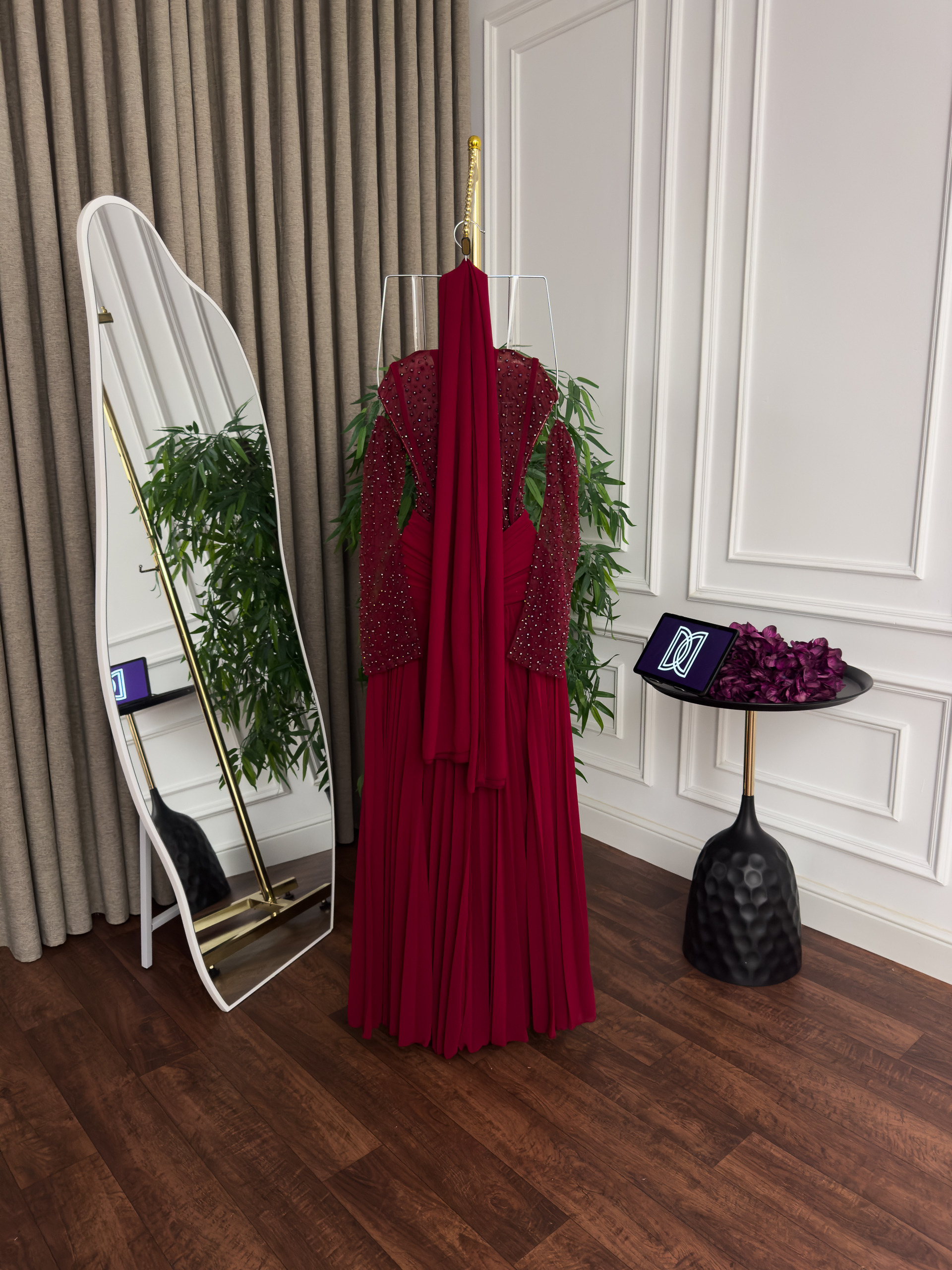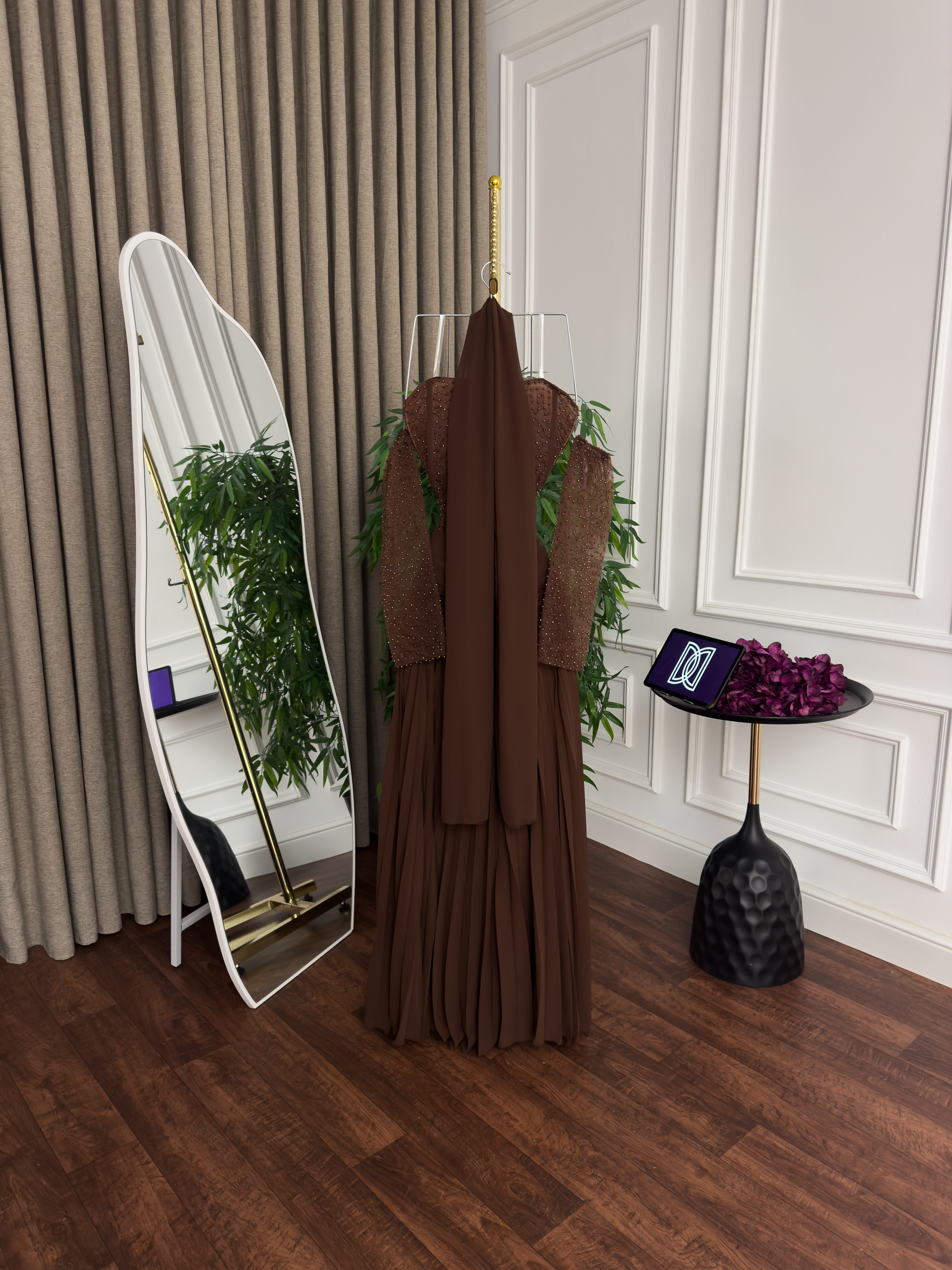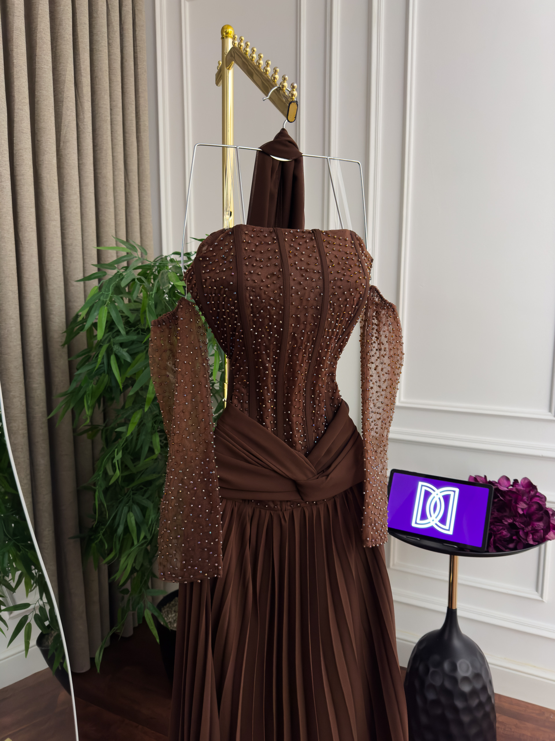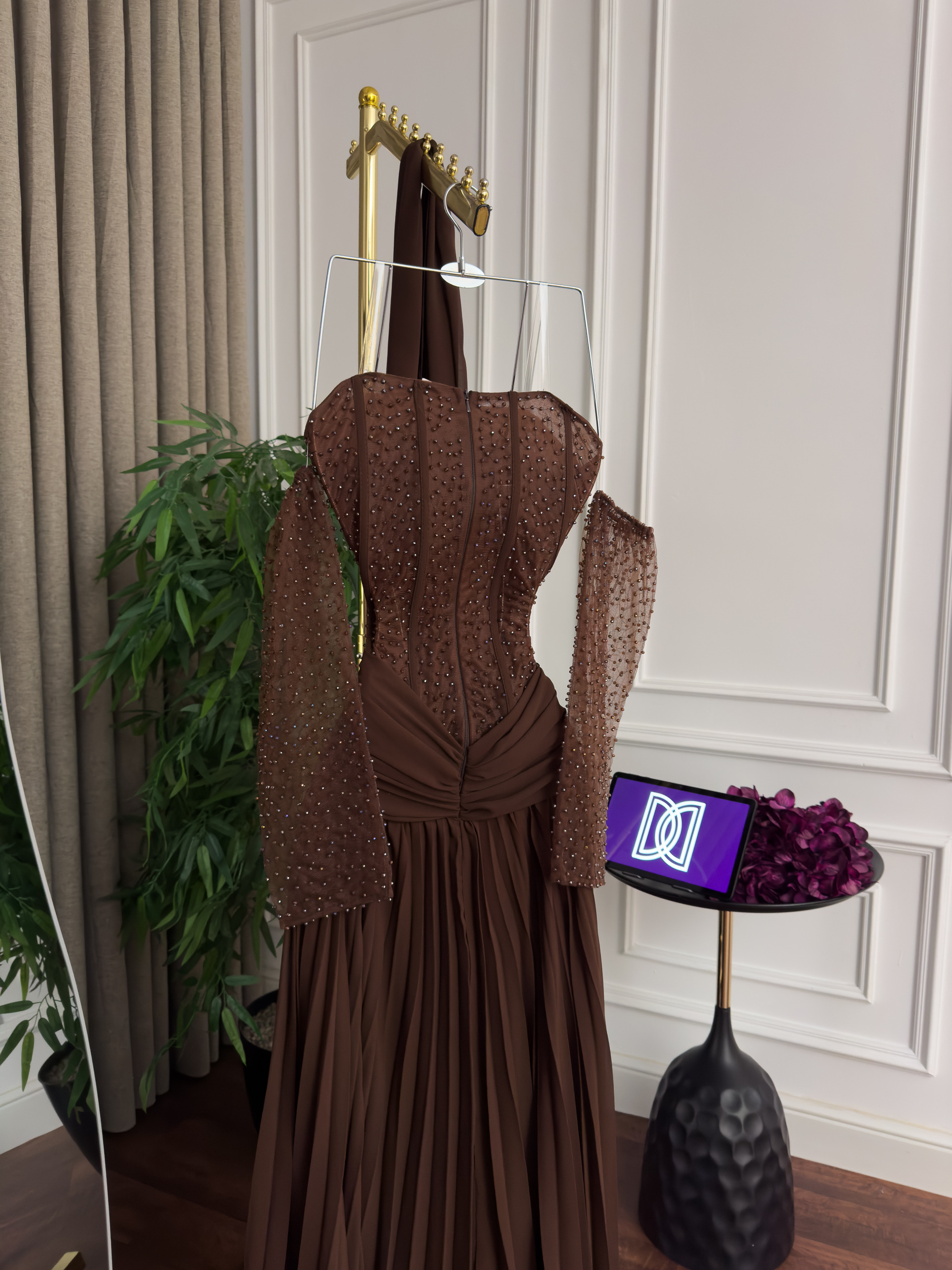 فستان سهره شيفون كم تطريز يدوي بليسا كلوش