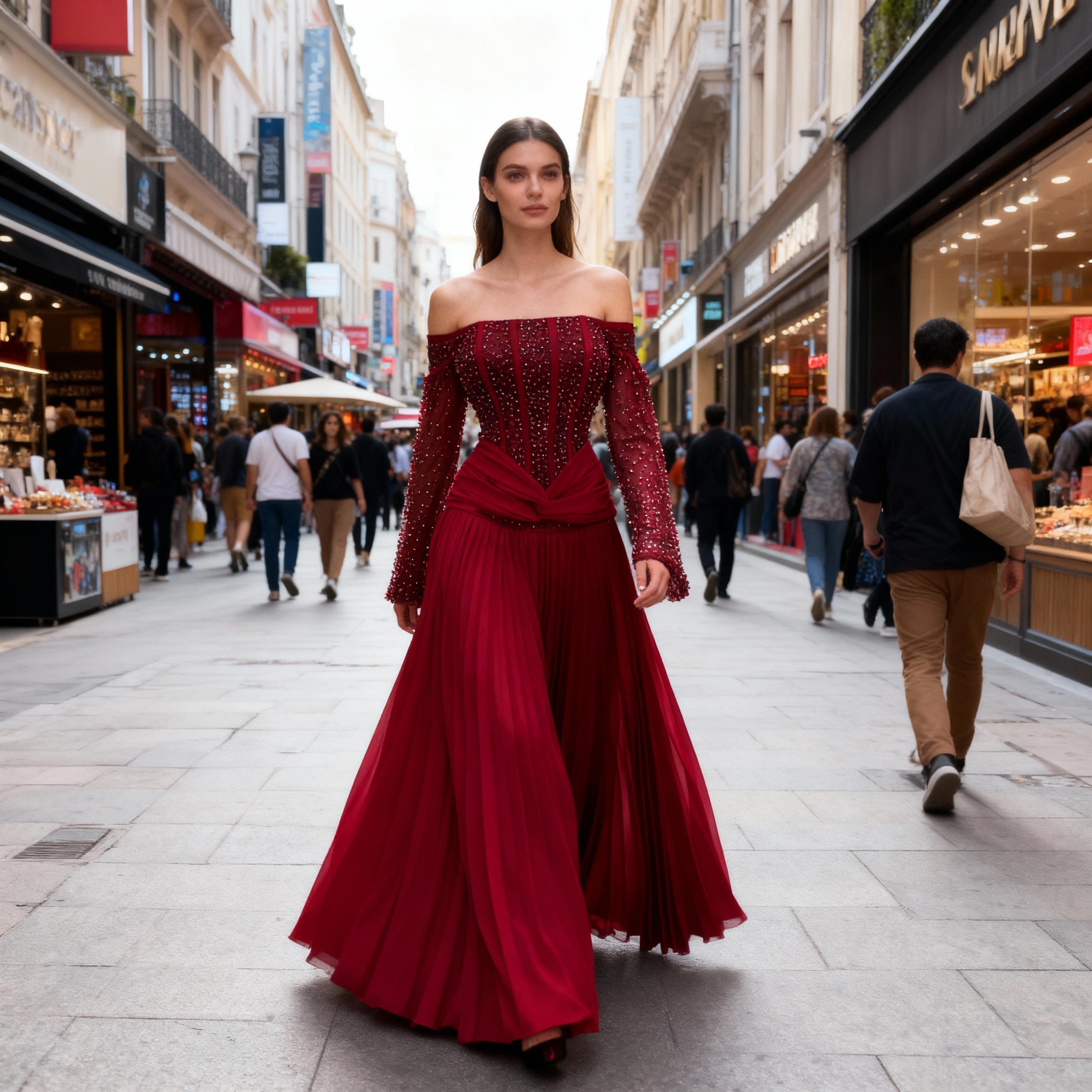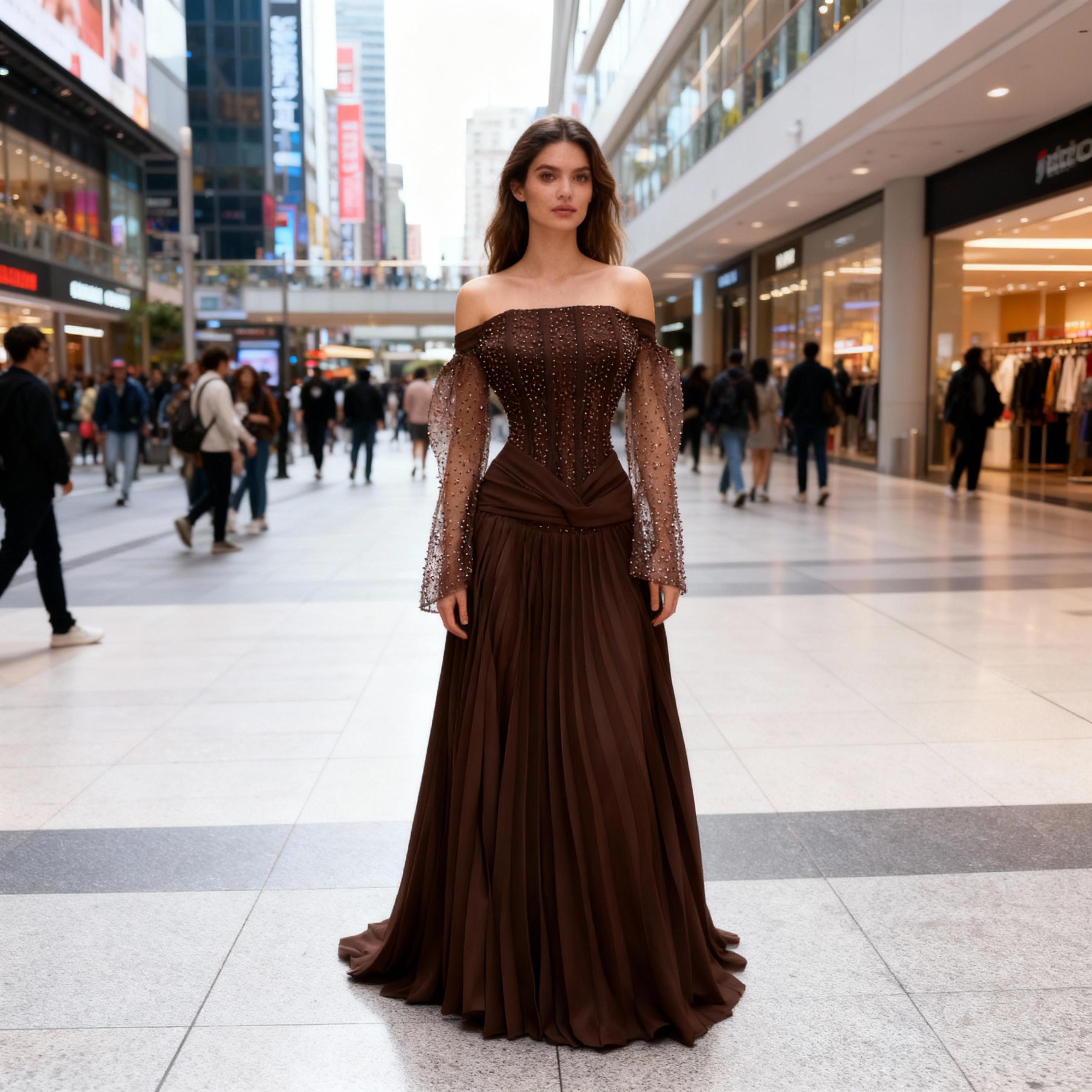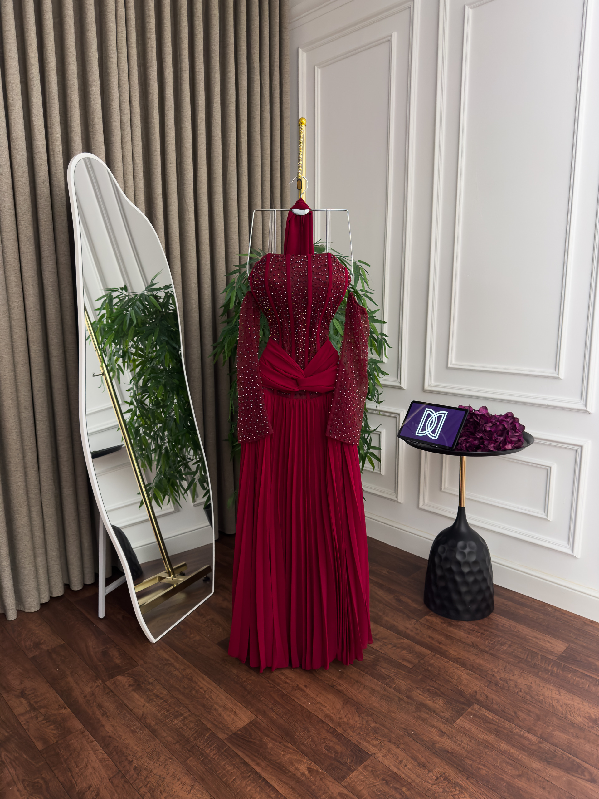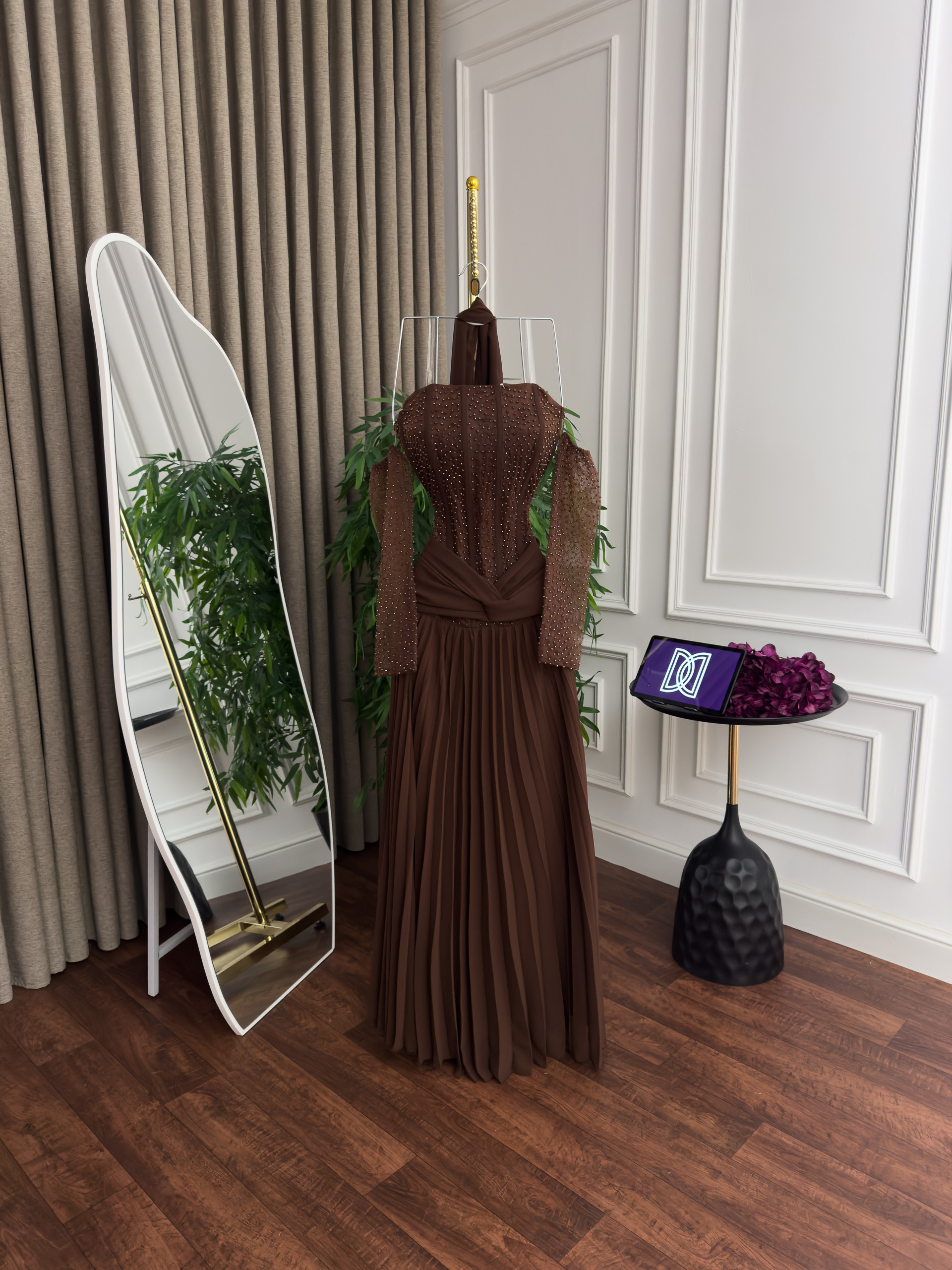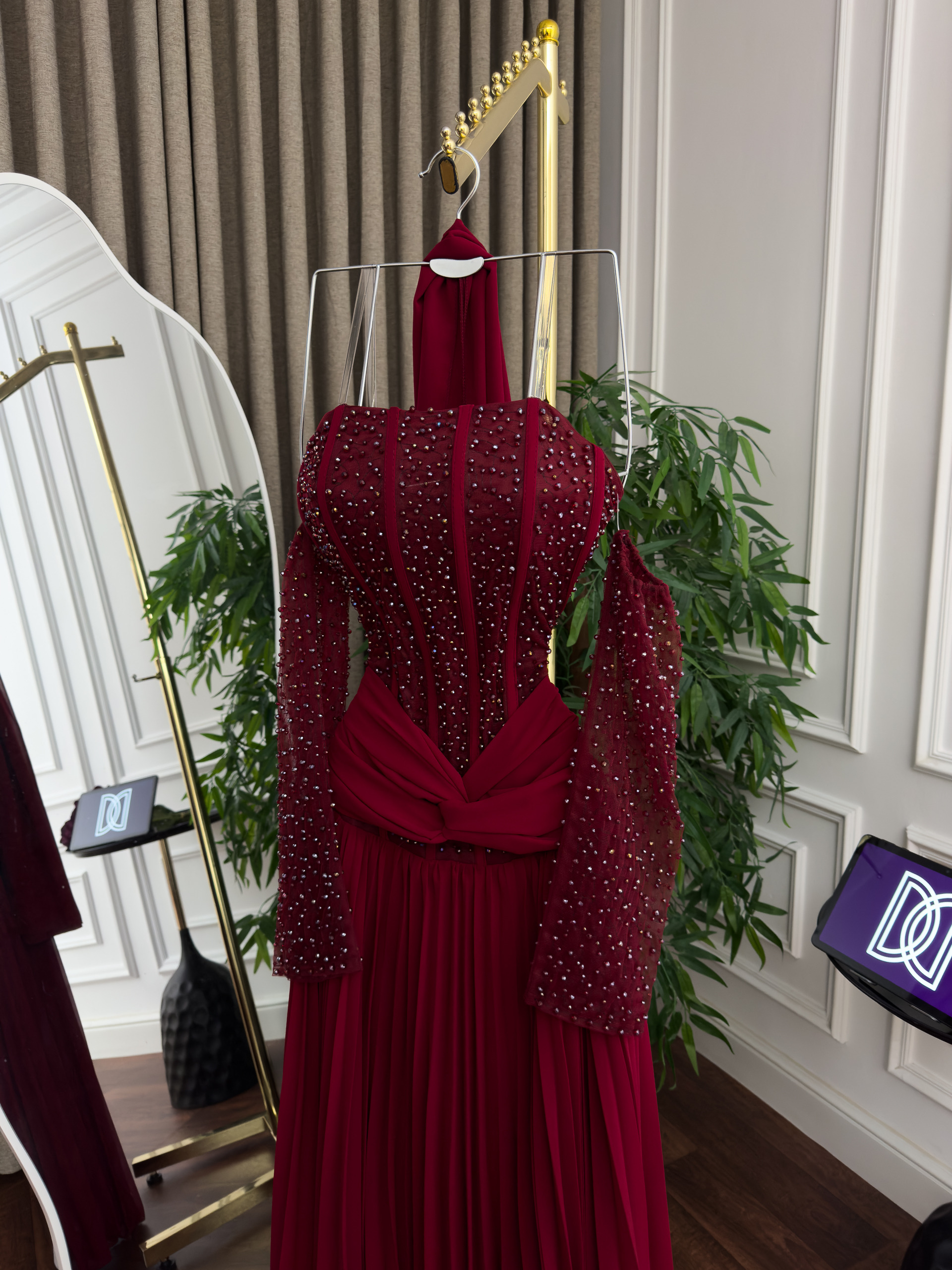فستان سهره شيفون كم تطريز يدوي بليسا كلوش