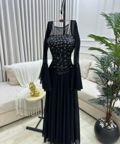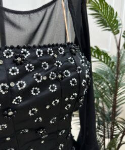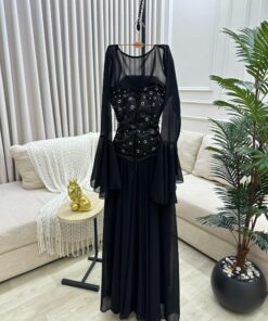فستان سهرة باللون الأسود بتفاصيل رائعة وتصميم أنيق