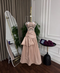 فستان سهرة وردي فاخر لإطلالة أنثوية راقية من متجر روزيتا السعودية 🌸💎