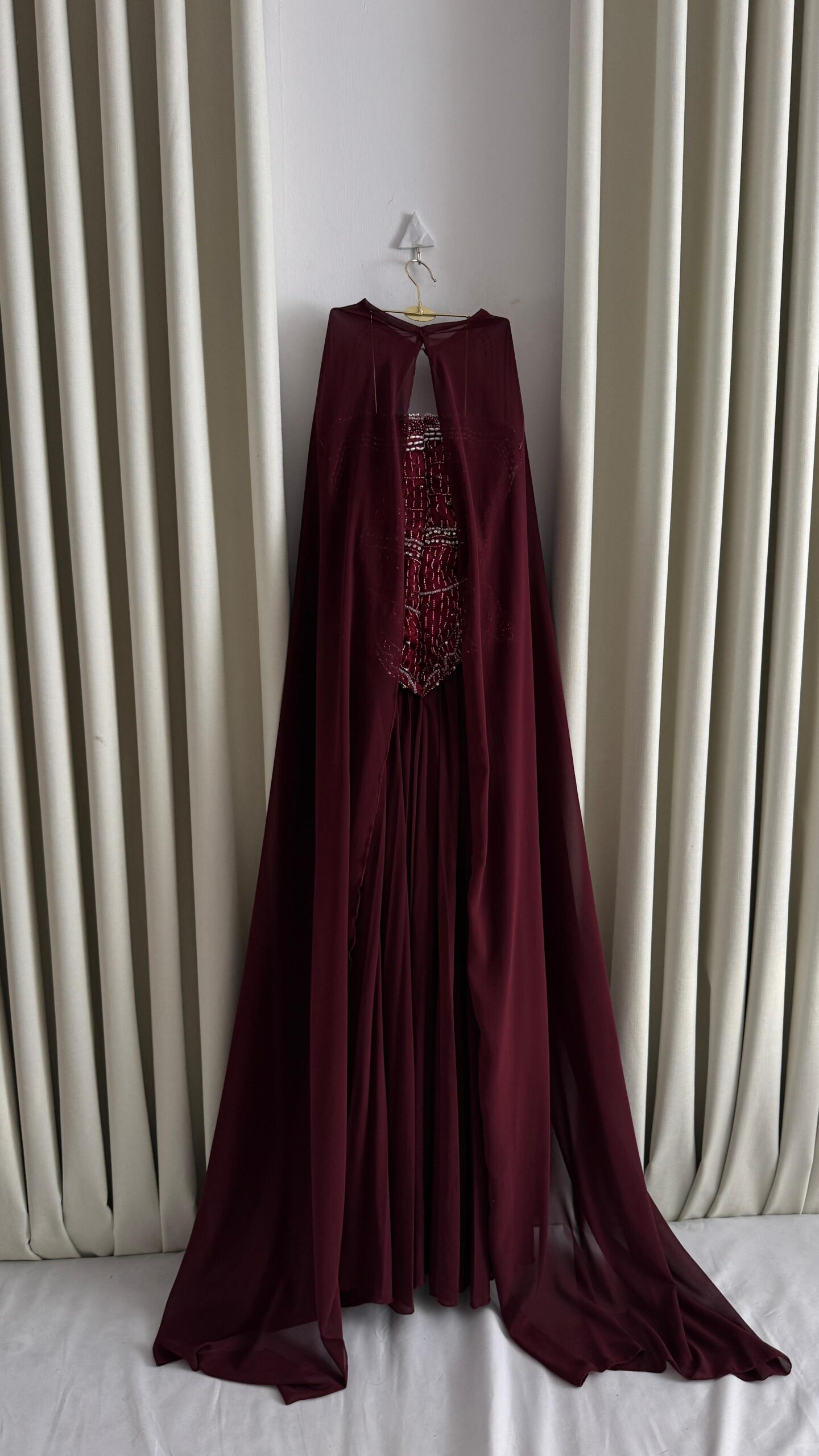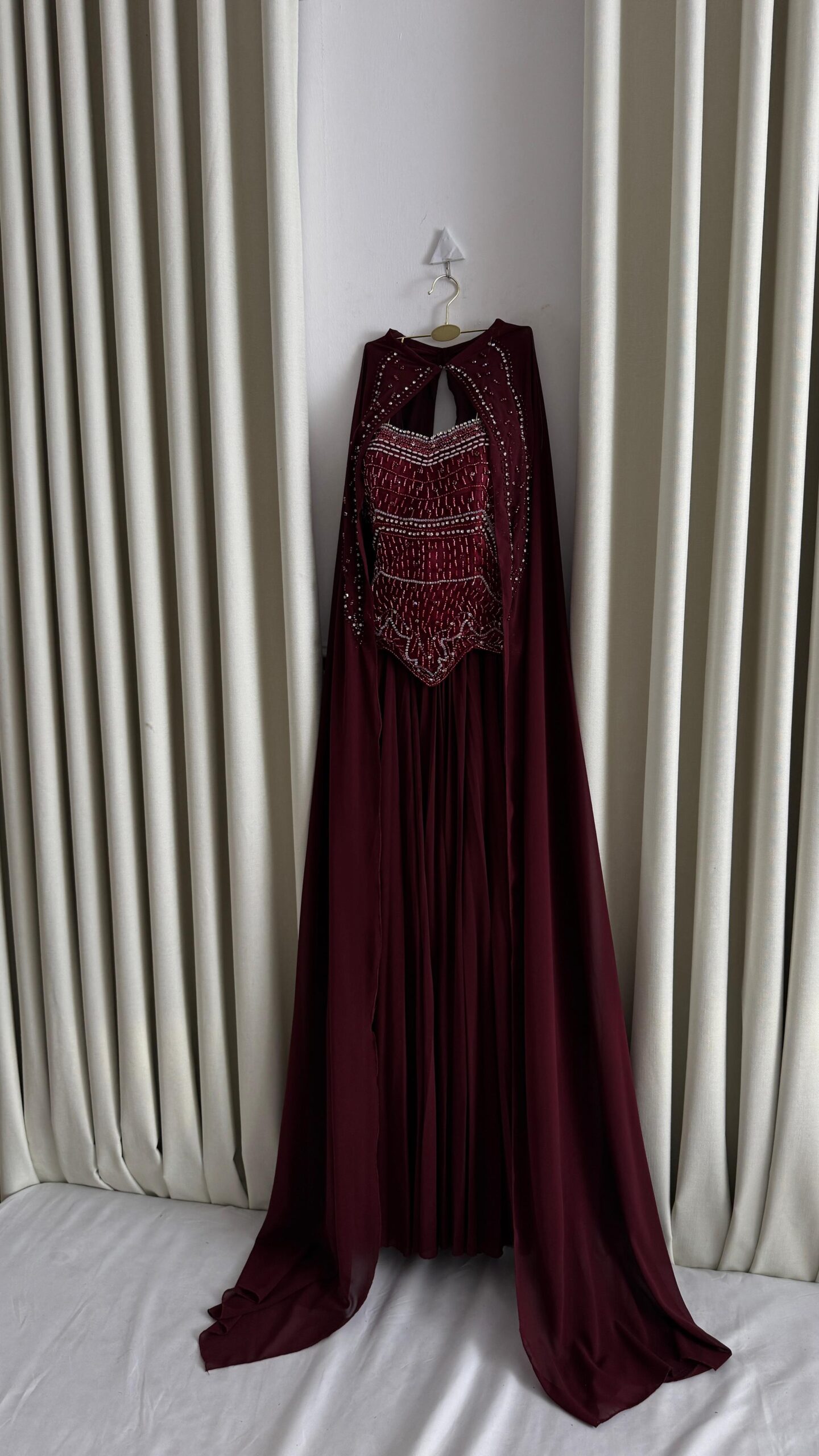 فستان سهرة عنّابي فخم من متجر روزيتا – تألقي بإطلالة ملكية
