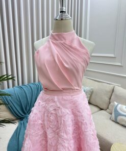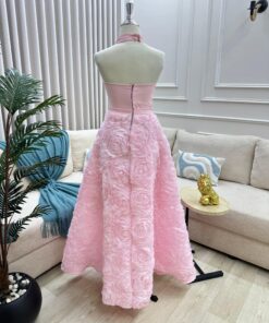 فستان سهرة بدون أكمام لون وردي