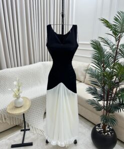 فستان سهرة بدون اكمام ناعم