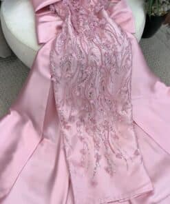 فستان سهرة فاخر بذيل طويل يمنحك إطلالة أنيقة في السهرات والمناسبات الخاصة. يتميز بتصميم راقٍ وقصة جميلة تضيف لمسة من الأناقة إلى المظهر العام،