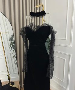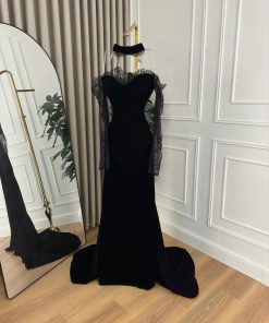 فستان سهرة بلون أسود مخمل
