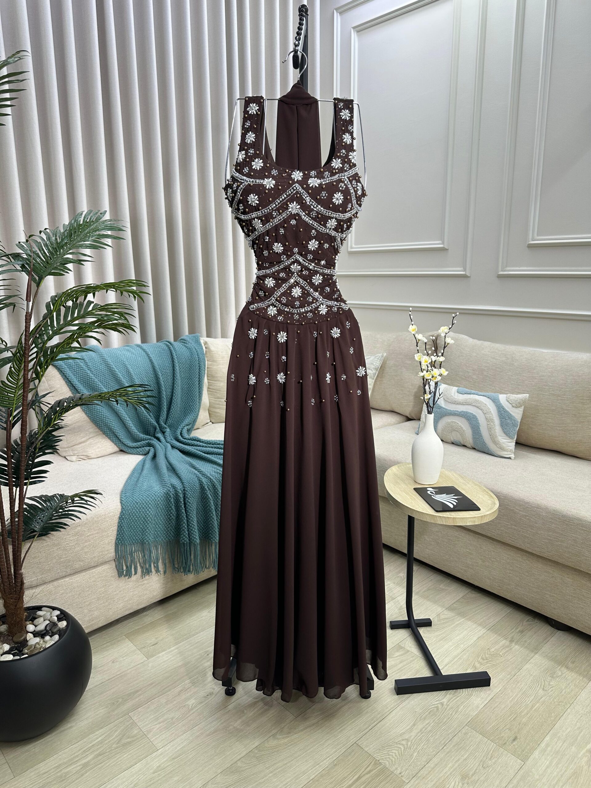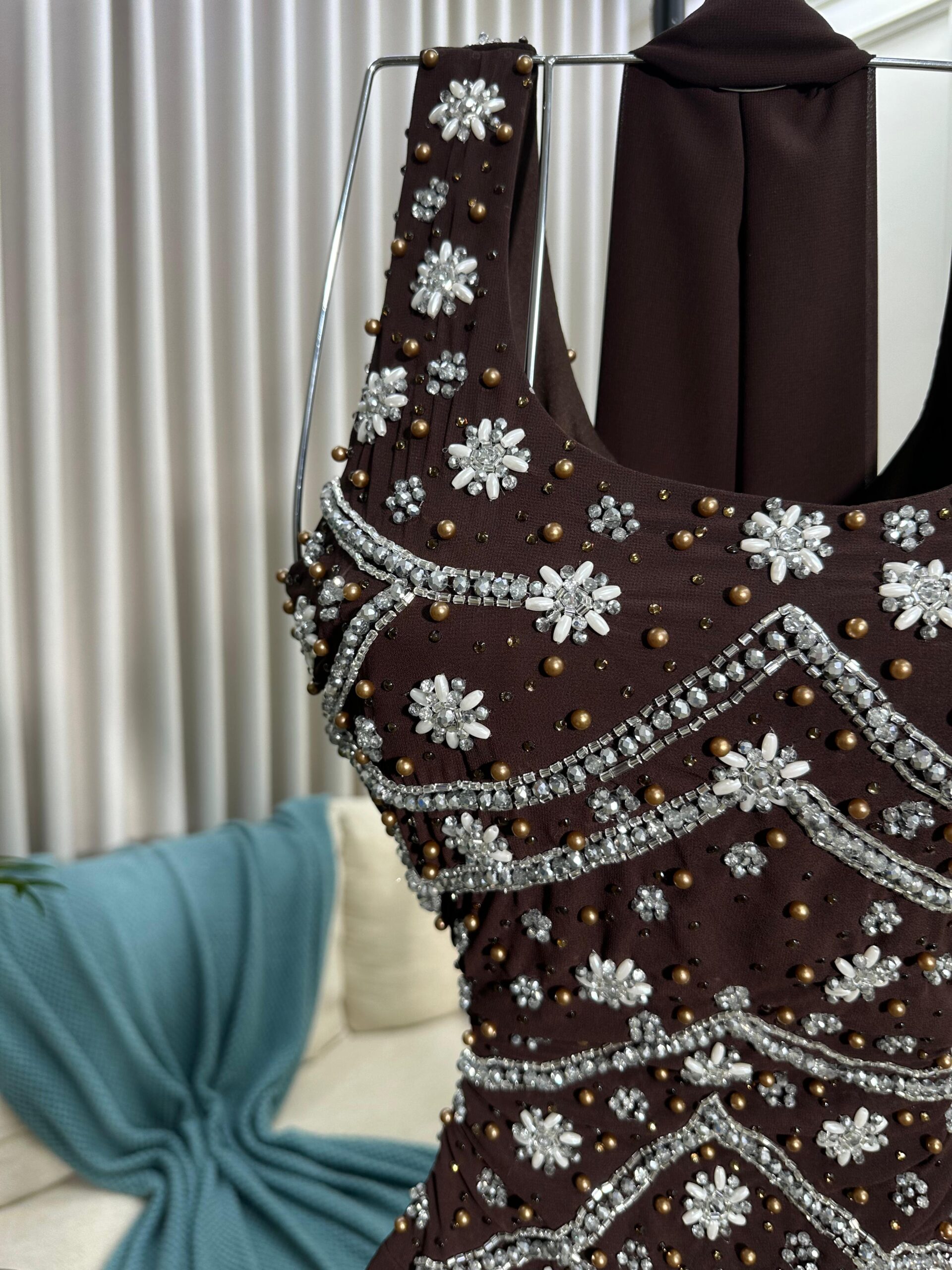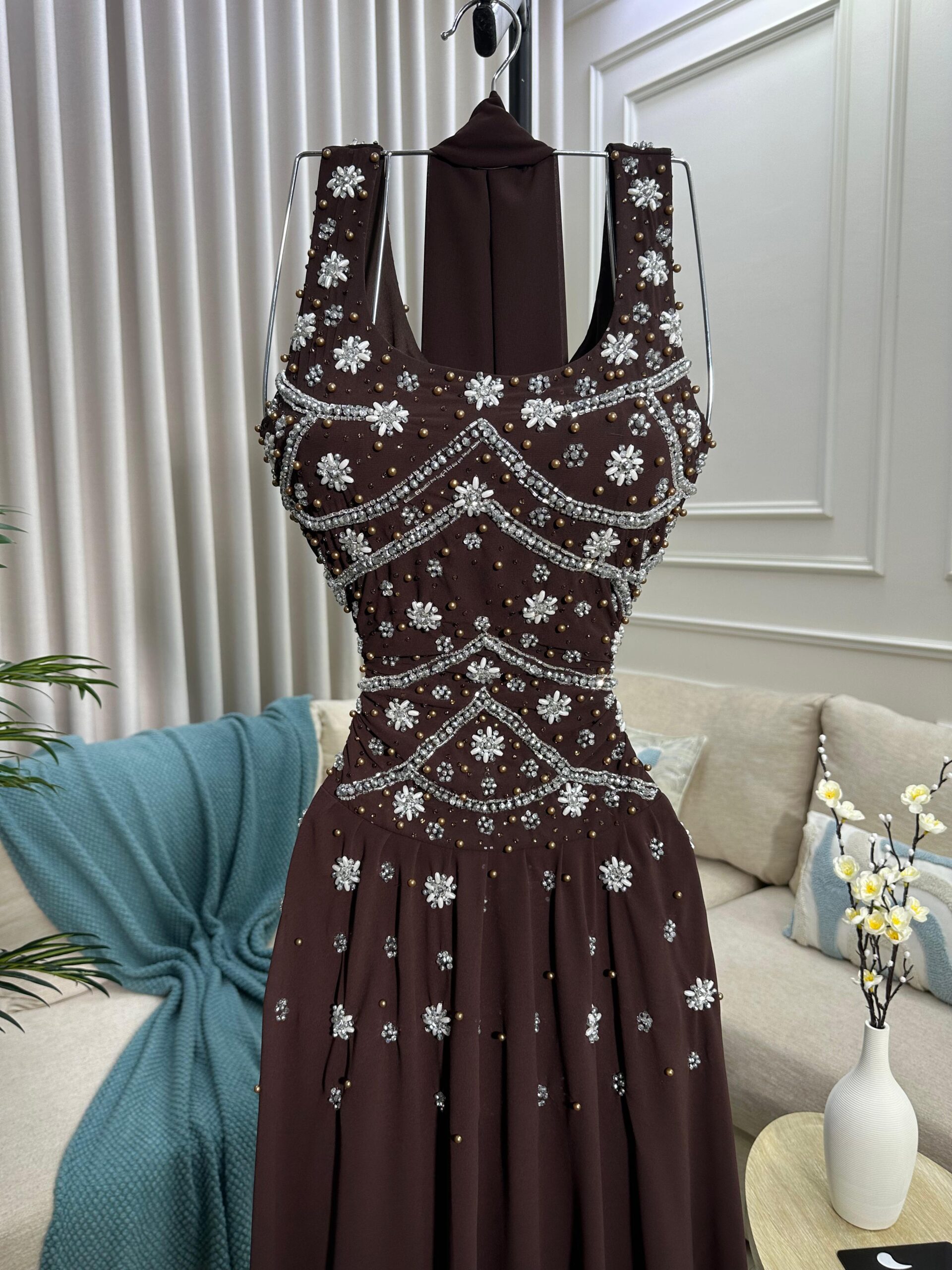 إذا كنتِ تبحثين عن فستان يلفت الأنظار ويضيف لمسة من الأناقة والرفاهية إلى إطلالتك في المناسبات الخاصة، فإن فستان السهرة من متجر روزيتا في السعودية هو الخيار المثالي. يأتي هذا الفستان بلون بني داكن جذاب، مع تطريزات أنيقة تضفي عليه لمسة من الفخامة والتألق.