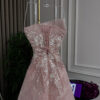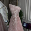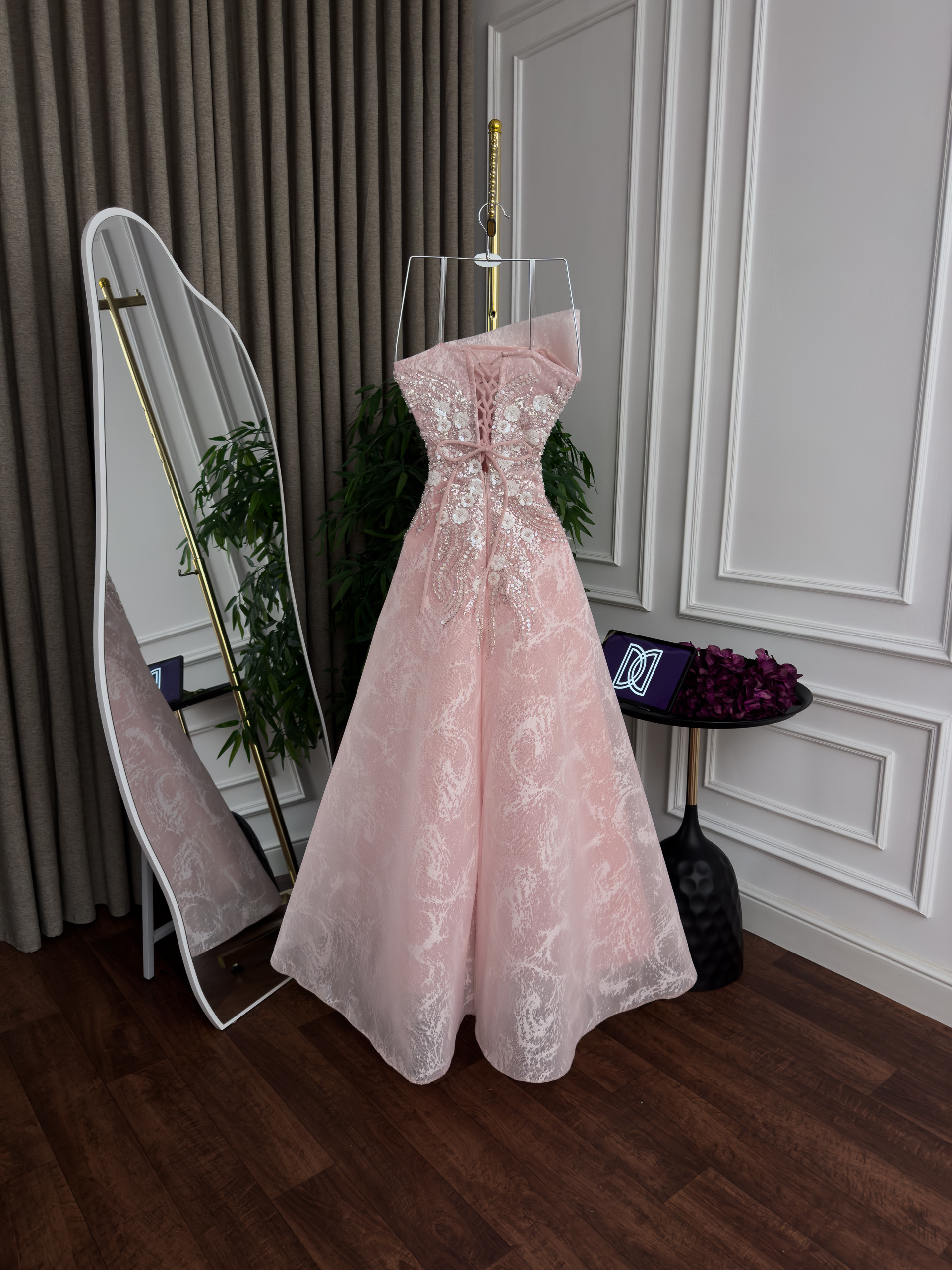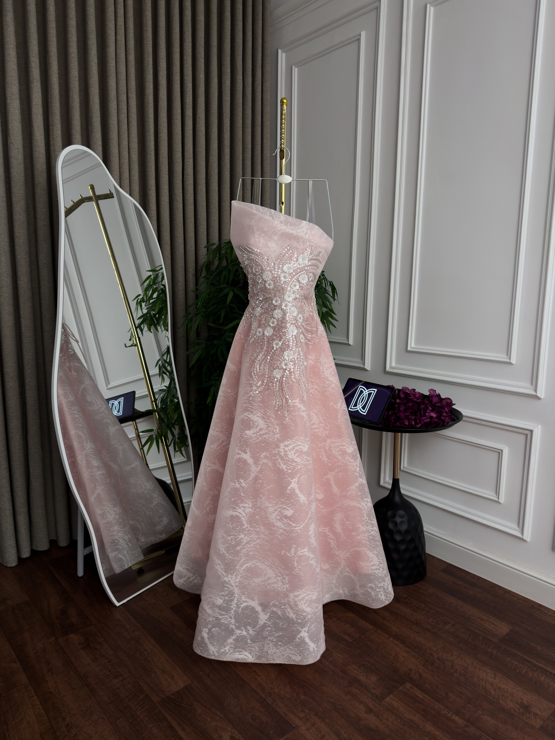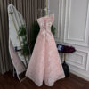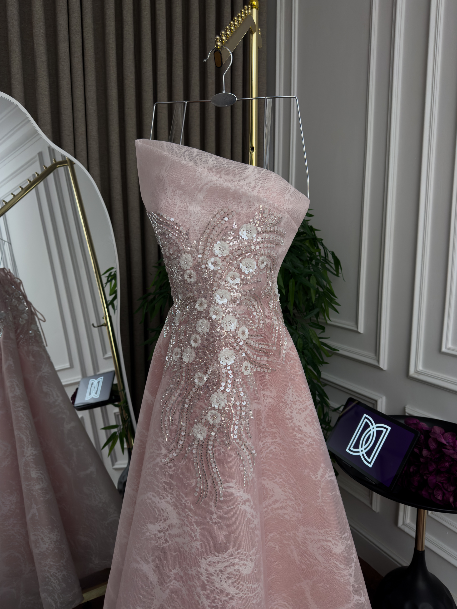 فستان سهرة وردي فخم بتصميم أنثوي راقٍ