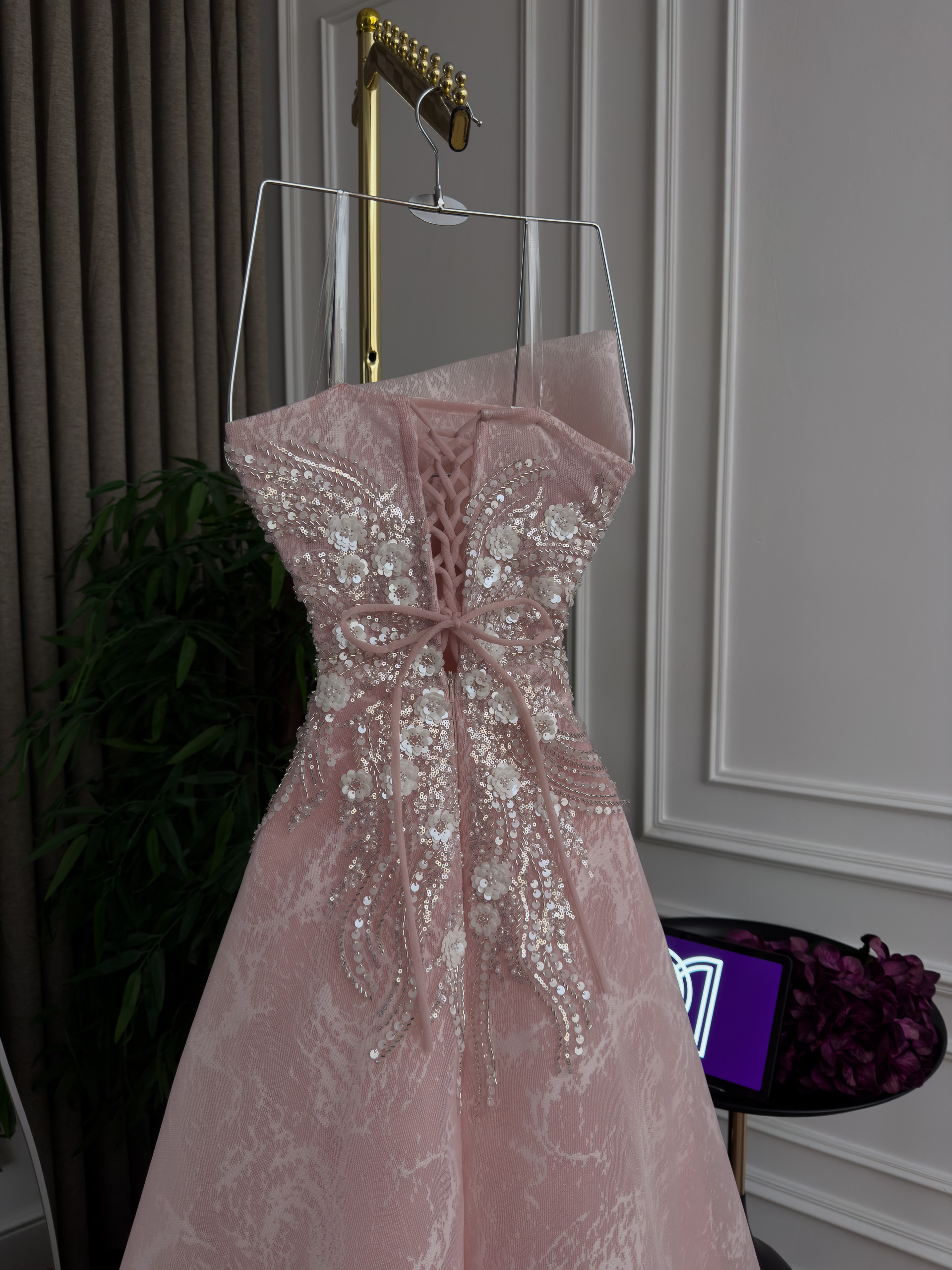 يُعد هذا الفستان الوردي الفخم من أجمل تصاميم السهرات التي تجمع بين النعومة والرقي. تم تصميمه بعناية ليمنحك إطلالة أنثوية ساحرة في كل مناسبة، مع لمسات تطريز راقية تضيف بريقًا جذابًا لكل تفصيلة فيه.