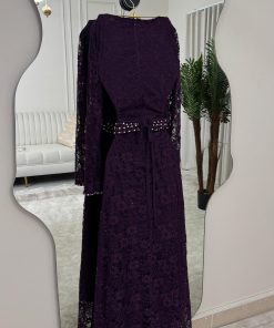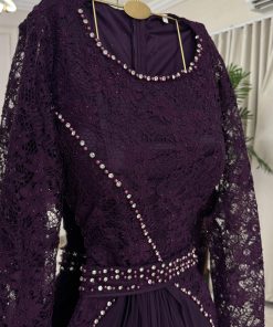 فستان سهرة بنفسجي دانتيل مطرز – فخامة تجمع بين الأناقة والرقي