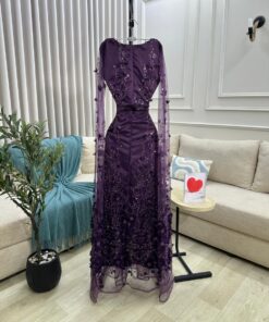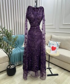 فستان سهرة بنفسجي فخم مطرز