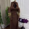 تألقي بإطلالة راقية مع هذا الفستان البني الطويل المصمم بأناقة فائقة، يتميز بقصة أكمام مكشوفة مزينة بتطريز يدوي ذهبي فاخر يضفي لمسة من الفخامة والجاذبية. مصنوع من قماش عالي الجودة بقصة انسيابية تعانق القوام وتمنحك مظهراً أنثوياً ساحراً في المناسبات والحفلات. تصميم عصري يجمع بين الجرأة والرقي، ليكون خيارك الأمثل للتميز في السهرات الخاصة.