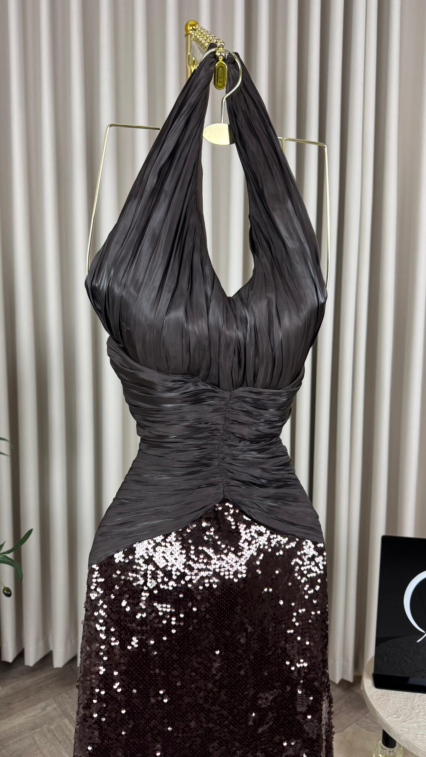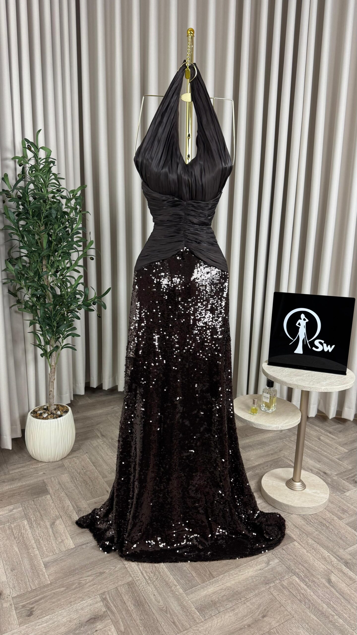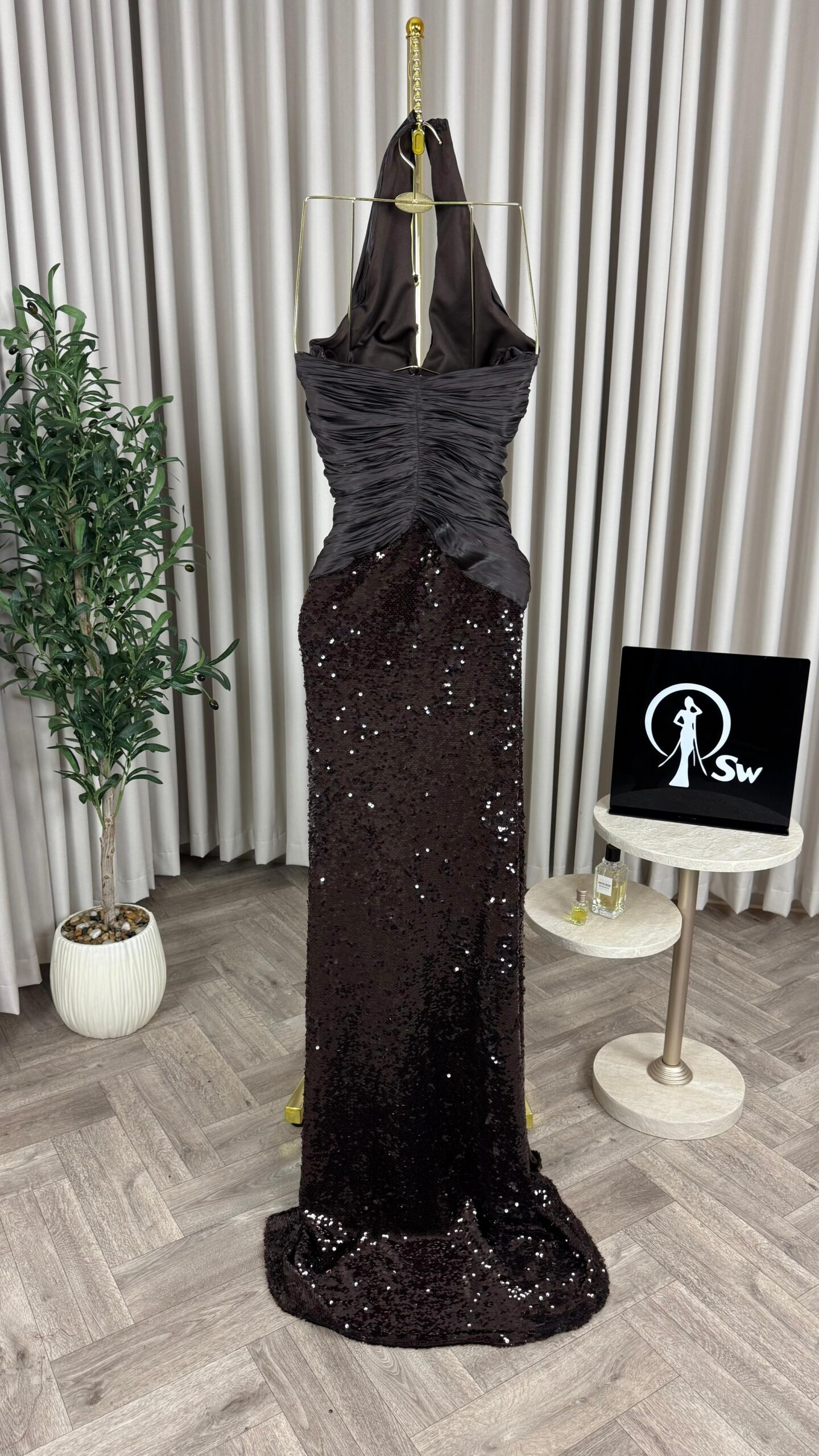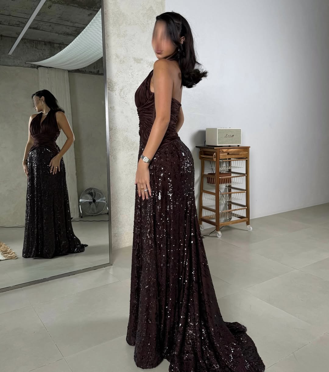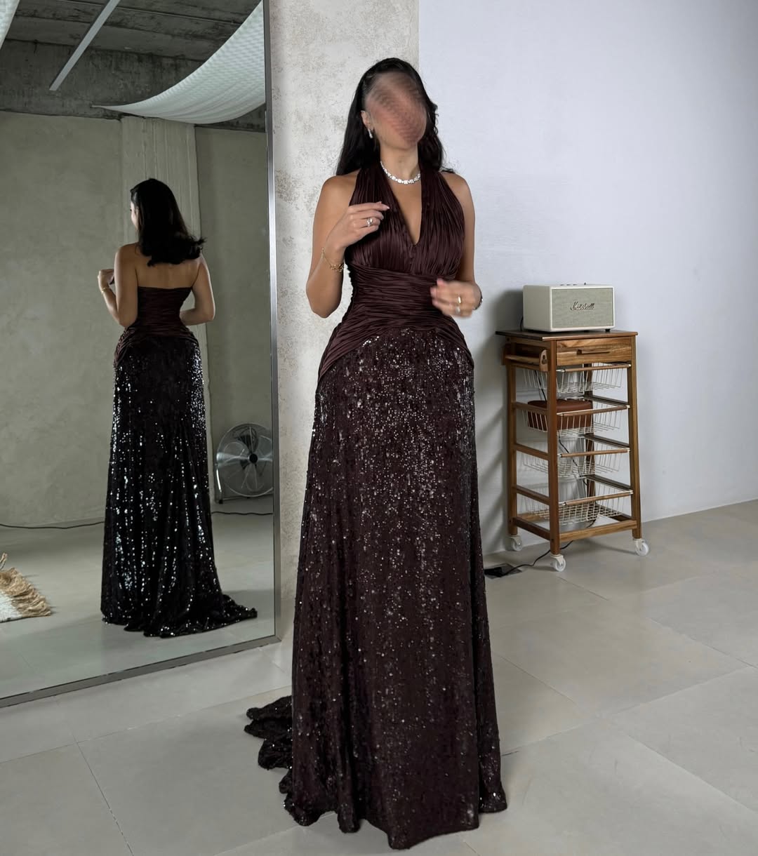 يقدم متجر روزيتا هذا التصميم البني البراق ليمنحك إطلالة تجمع بين القوة، الرقي، والجاذبية في آنٍ واحد، لتتألقي كملكة في كل مناسبة سعودية راقية.