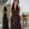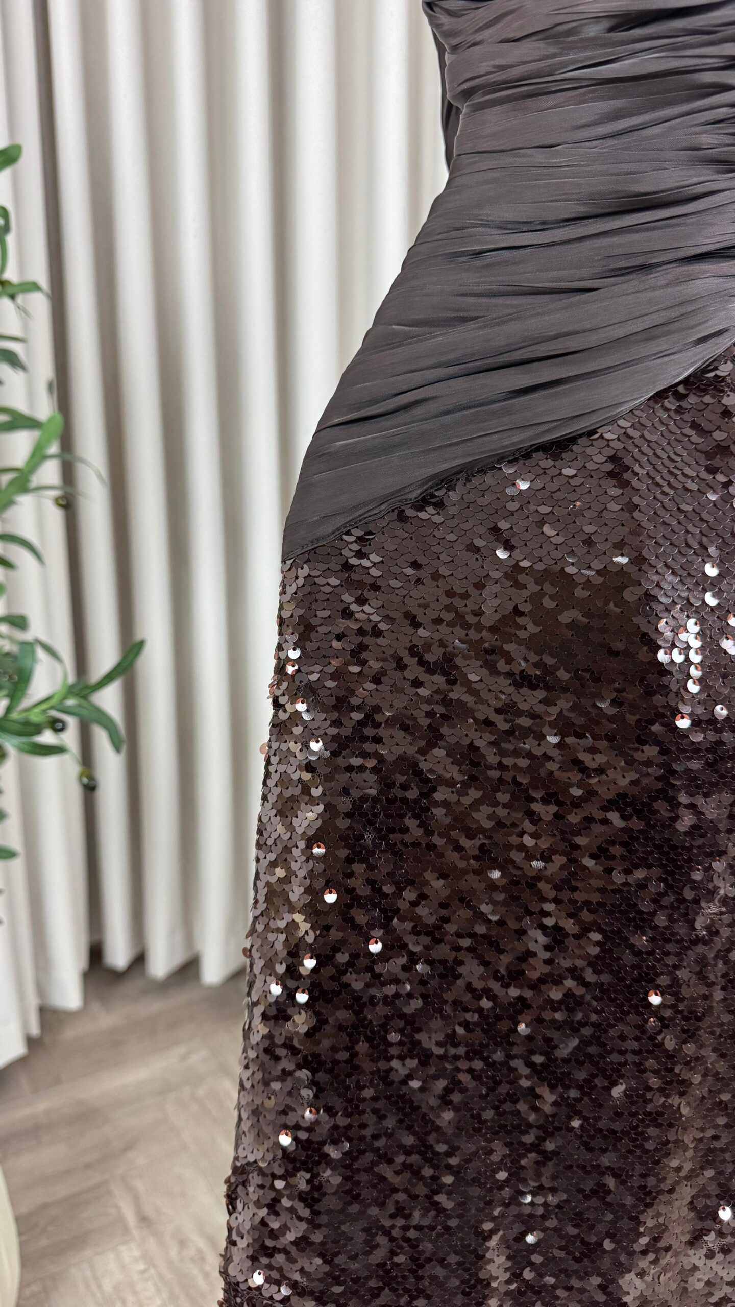 فستان سهرة بني براق من روزيتا | فخامة تجمع بين الأناقة والجرأة