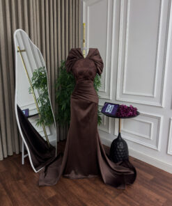 فستان سهرة بني طويل