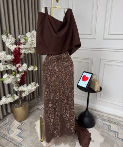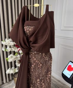 فستان أنيق بني بتطريزات دقيقة الجسمية. تصميمه الراقي من القماش يضم فعاليات رسمية والسهرات، مع تفاصيل جذابة مثل الشاش والمطر وقصة الكتف الفريدة التي تم تحميلها بالكامل من الفخامة. شيء يجمع بين المتوسط والخامسة ليعبر عنها
