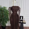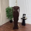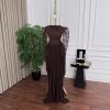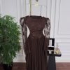 فستان سهرة بني فاخر بتفاصيل دانتيل