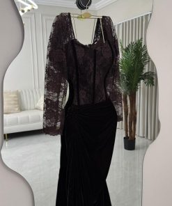 فستان سهرة بني مخمل