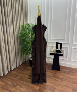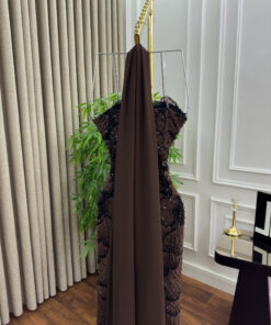 فستان سهرة بني مرصّع فاخر