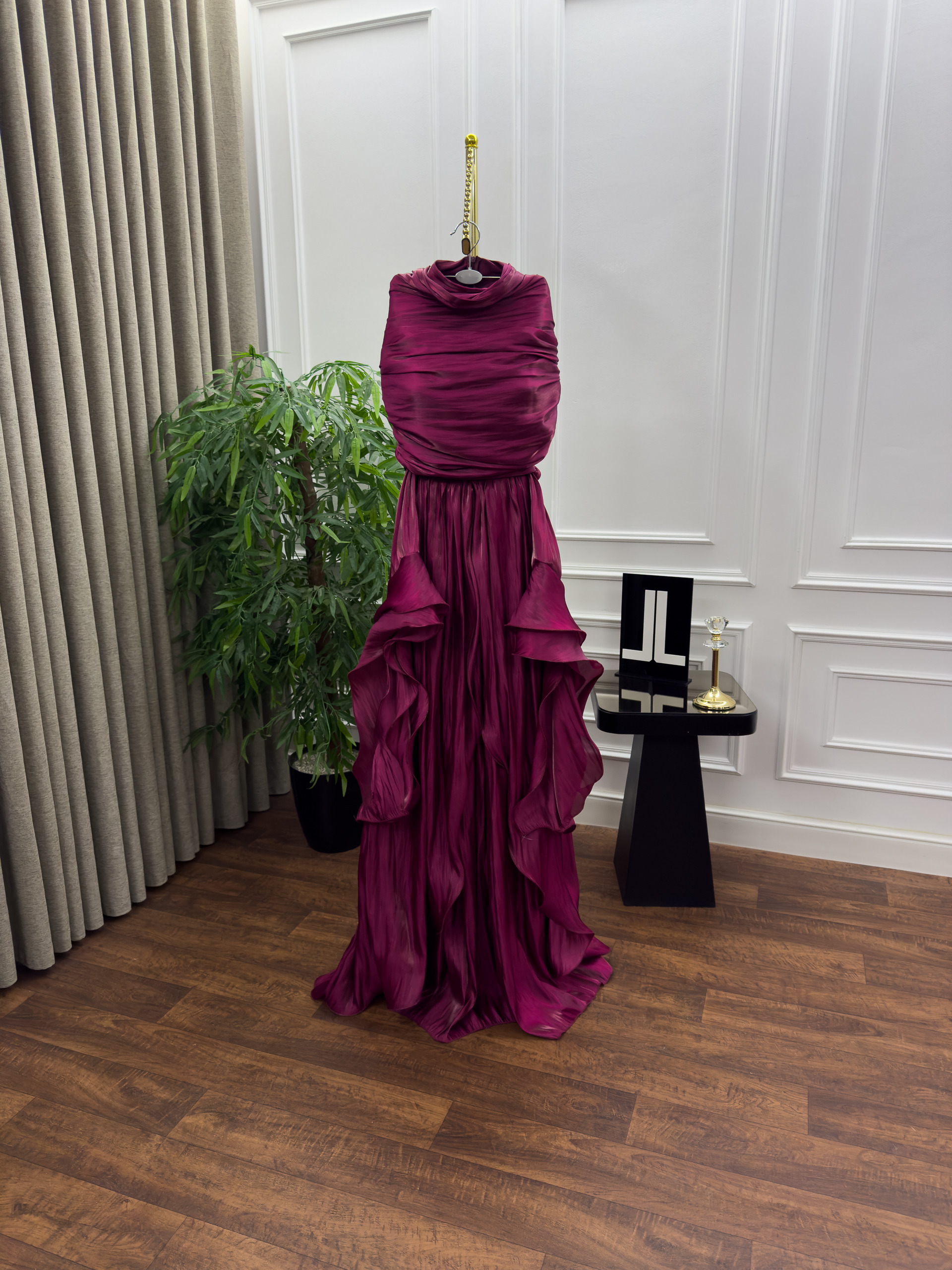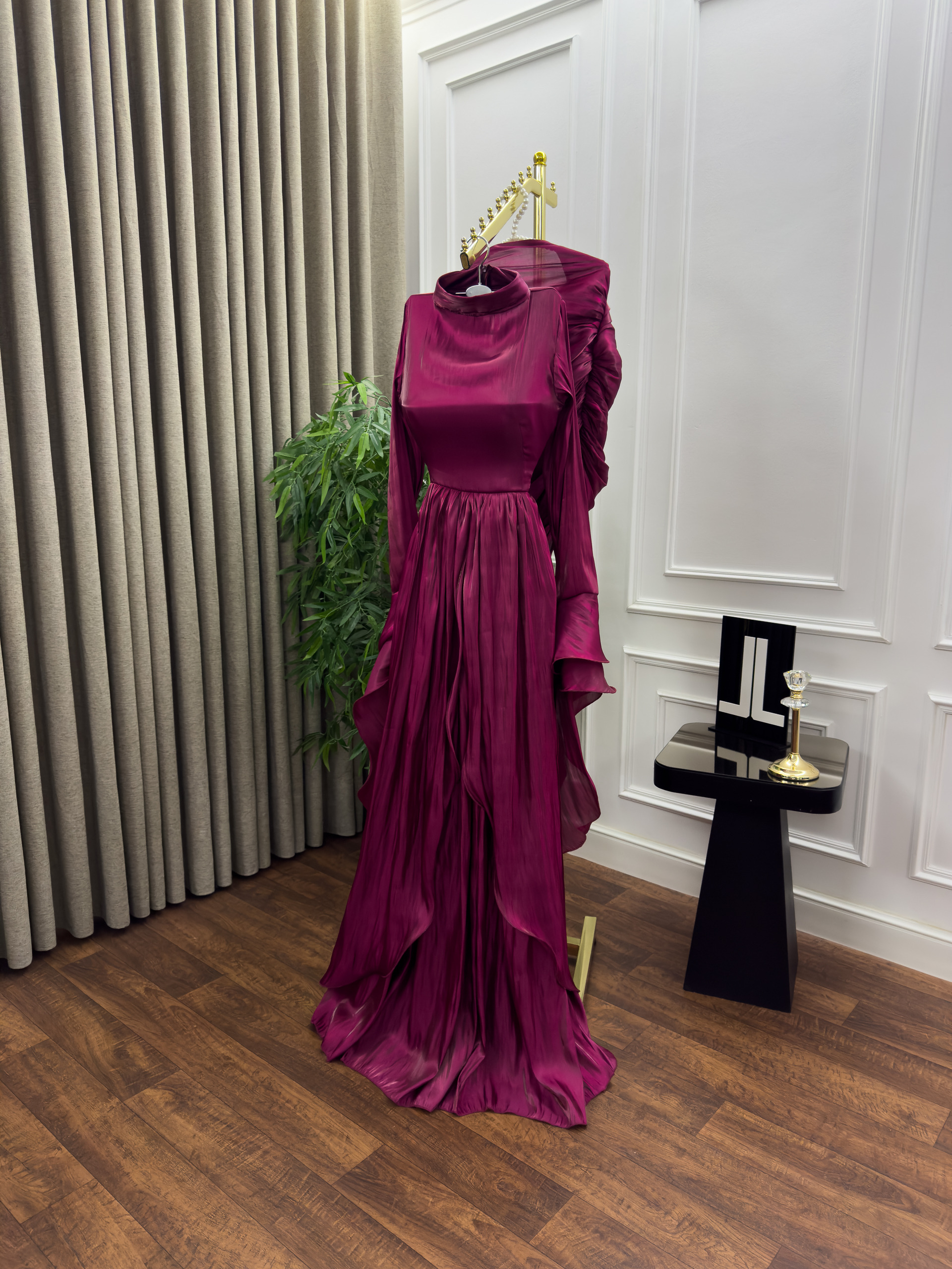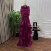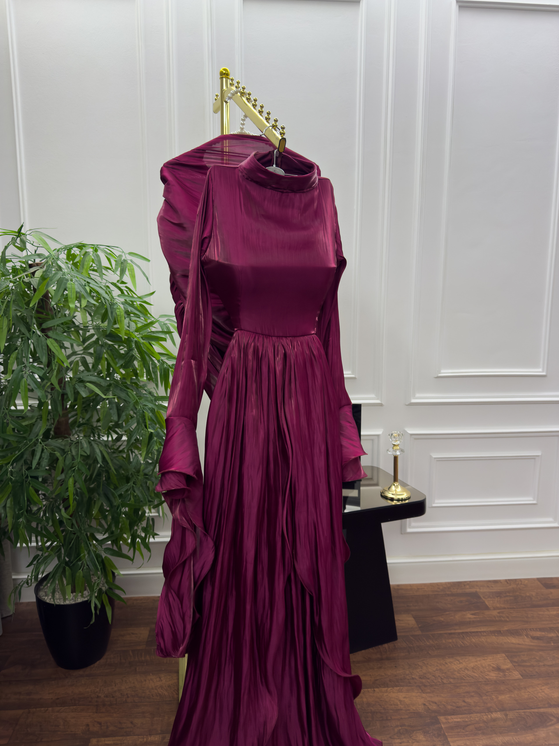 فستان سهرة بوردو طويل بتصميم مميز – متجر روزيتا السعودية
