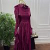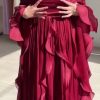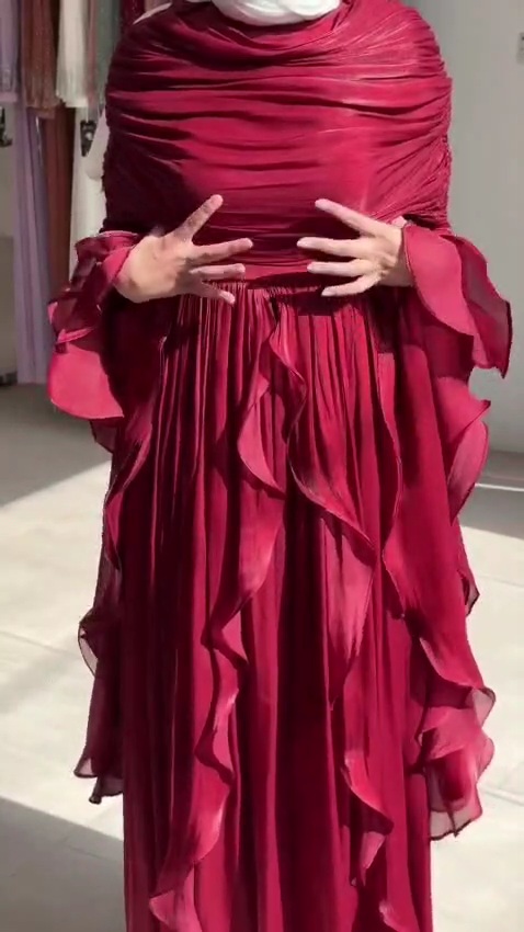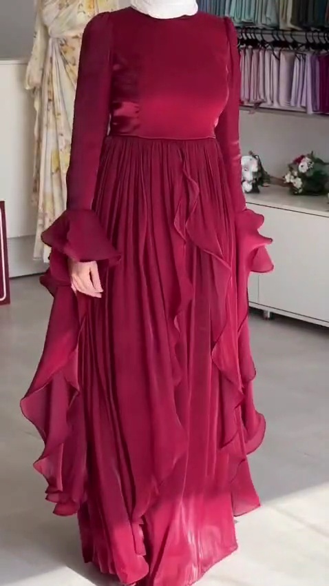 يأتي هذا الفستان بلون البوردو الرائع، مع أكمام طويلة وجزء علوي مصمم بأناقة يعكس مزيجاً من الفخامة والبساطة. أما الجزء السفلي فيتميز بتصميم تنورة انسيابية تنساب برشاقة لتمنحكِ إطلالة لا مثيل لها. أما التفاصيل الراقية على الخصر، فإنها تضفي لمسة من الفخامة التي تميزك عن الآخرين.