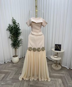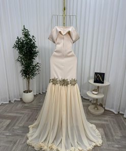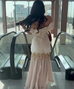 فستان سهرة بيج أنيق بقصة أوف شولدر