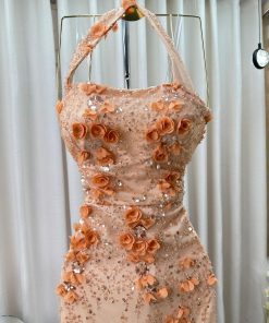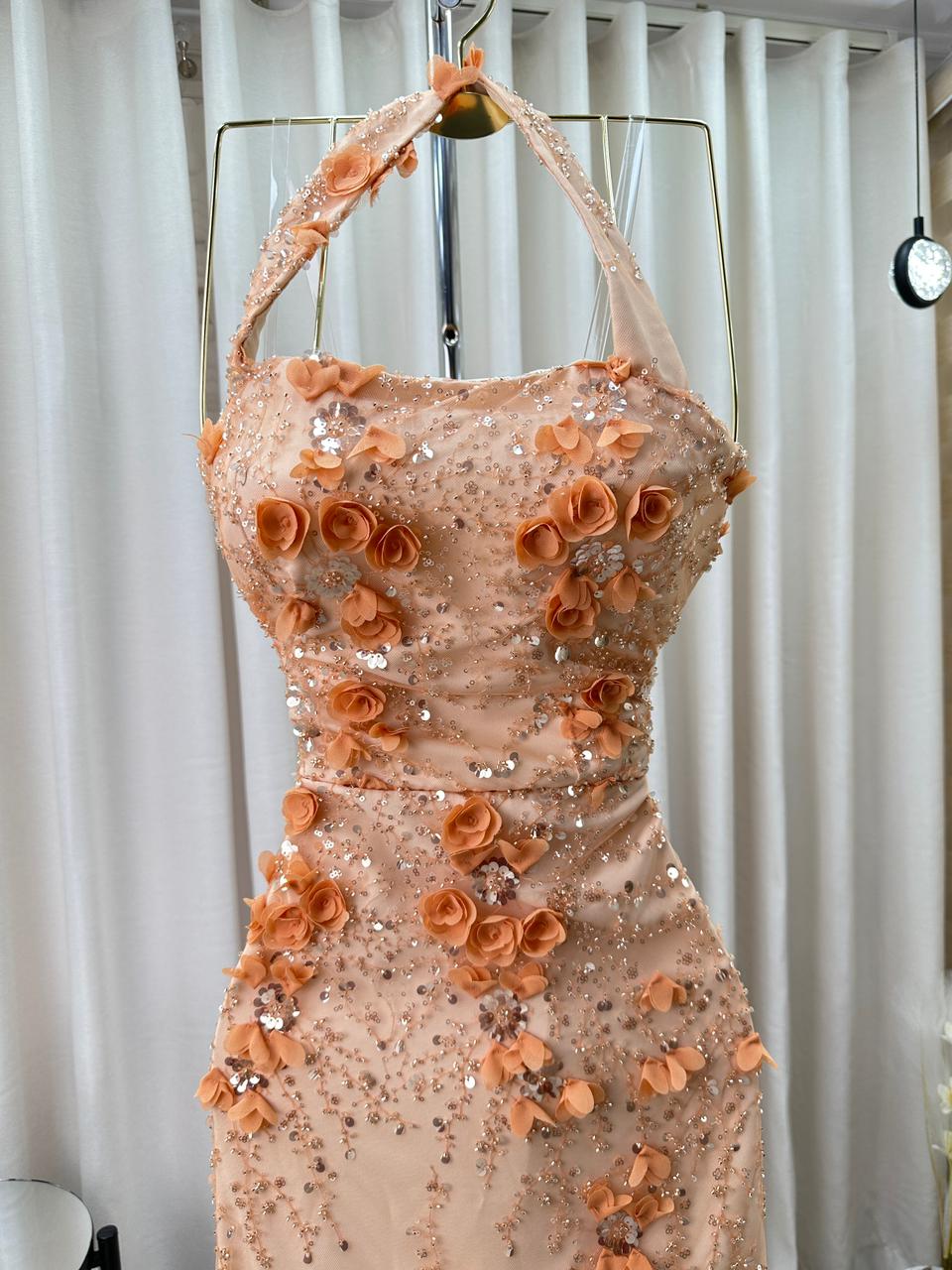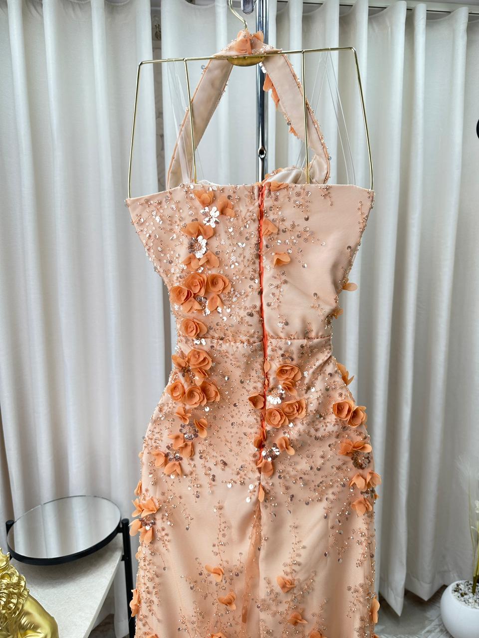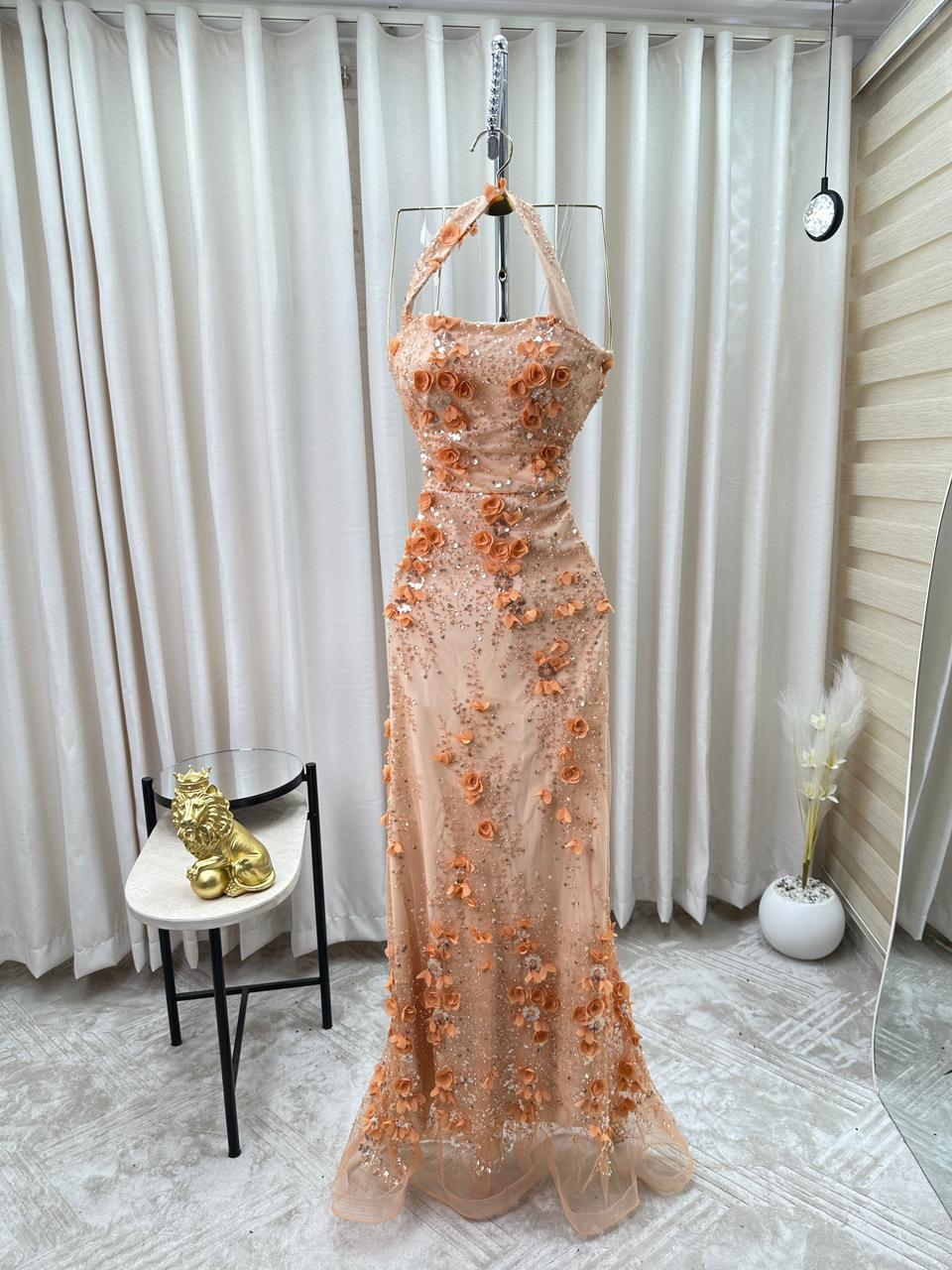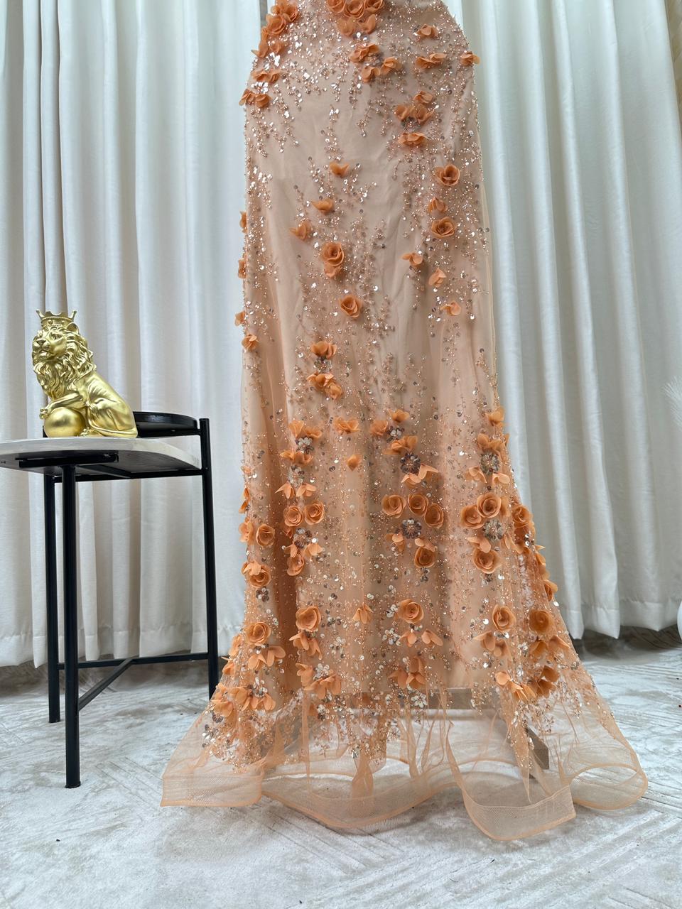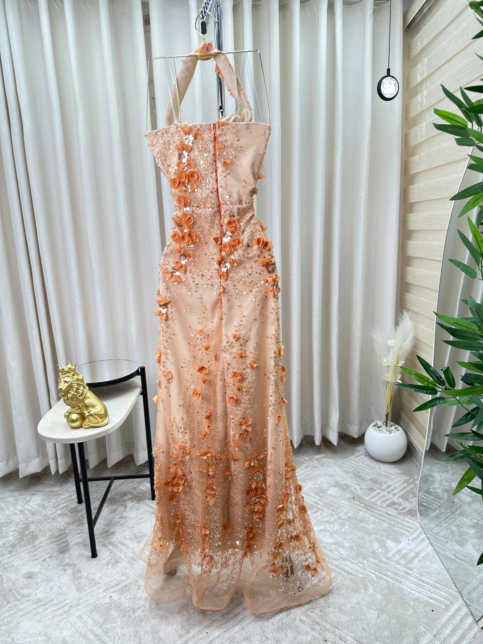 فستان سهرة بيج مشمشي فاخر