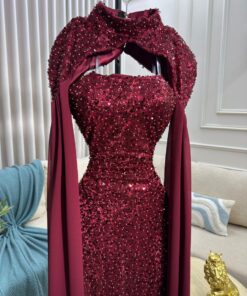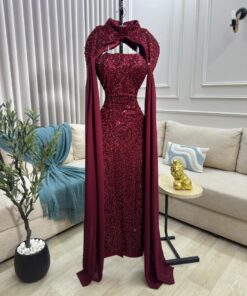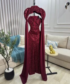 فستان سهرة ترتر عنابي
