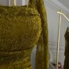 فستان سهرة تفاحي دانتيل بأكمام طويلة تصميم أنيق وفاخر