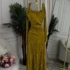 تم تصميم الفستان بقصة أنثوية مستقيمة تبرز القوام بشكل متوازن وجذاب، مع خصر محدد يمنح مظهرًا راقيًا دون مبالغة، مما يجعله مناسبًا لمختلف أشكال الجسم.