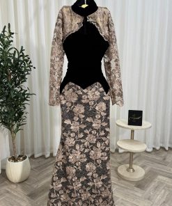 فستان سهرة جوخ مع دانتيل تصميم فخم يناسب المناسبات