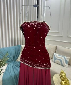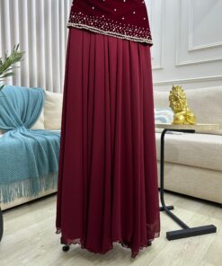 فستان سهرة فاخر من الجوخ يتميز بتصميم بسيط وأنيق يناسب السهرات والمناسبات الخاصة. يمنحك مظهرًا جذابًا بفضل قصته الأنيقة وخامته الدافئة.