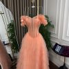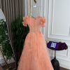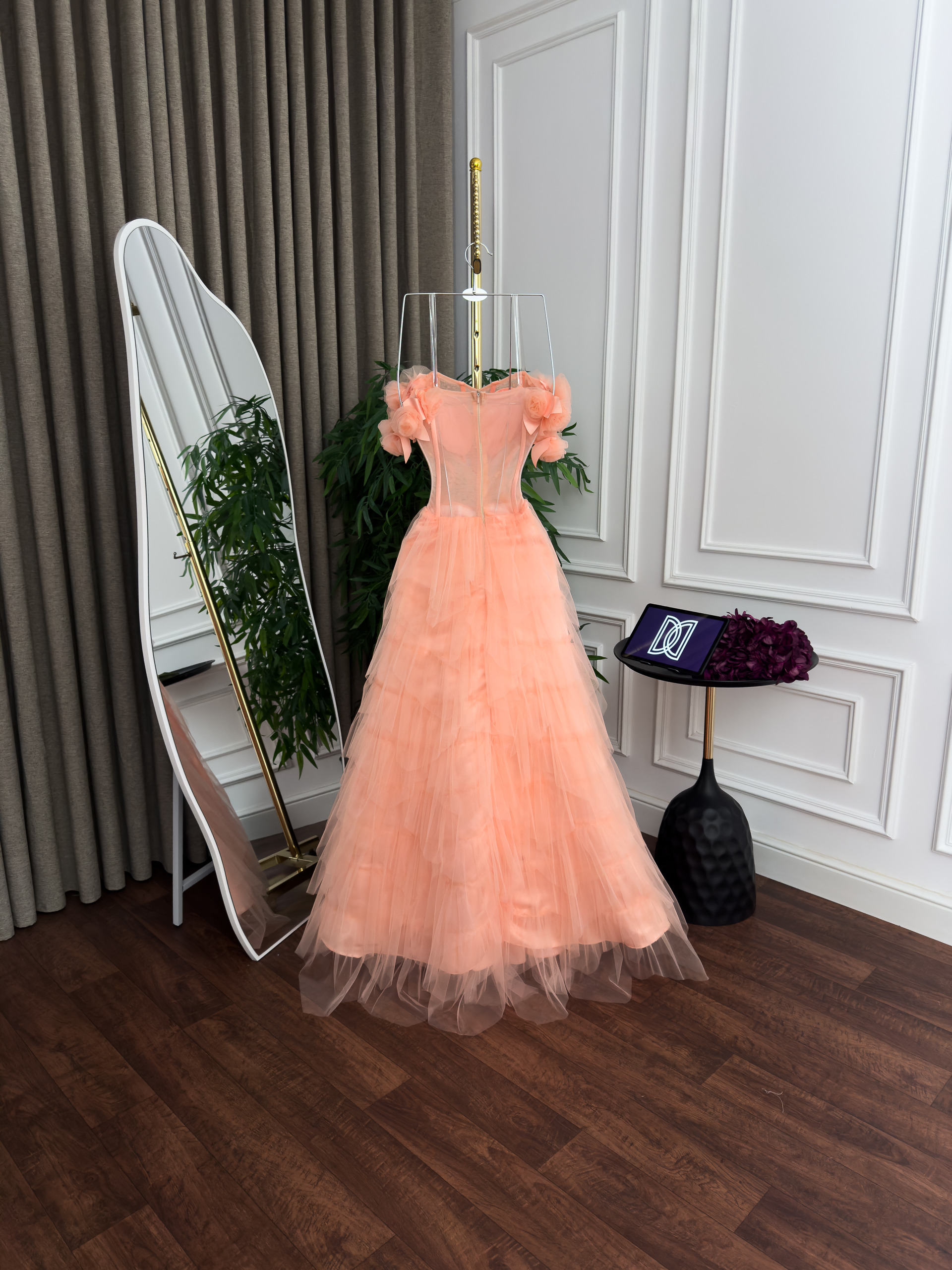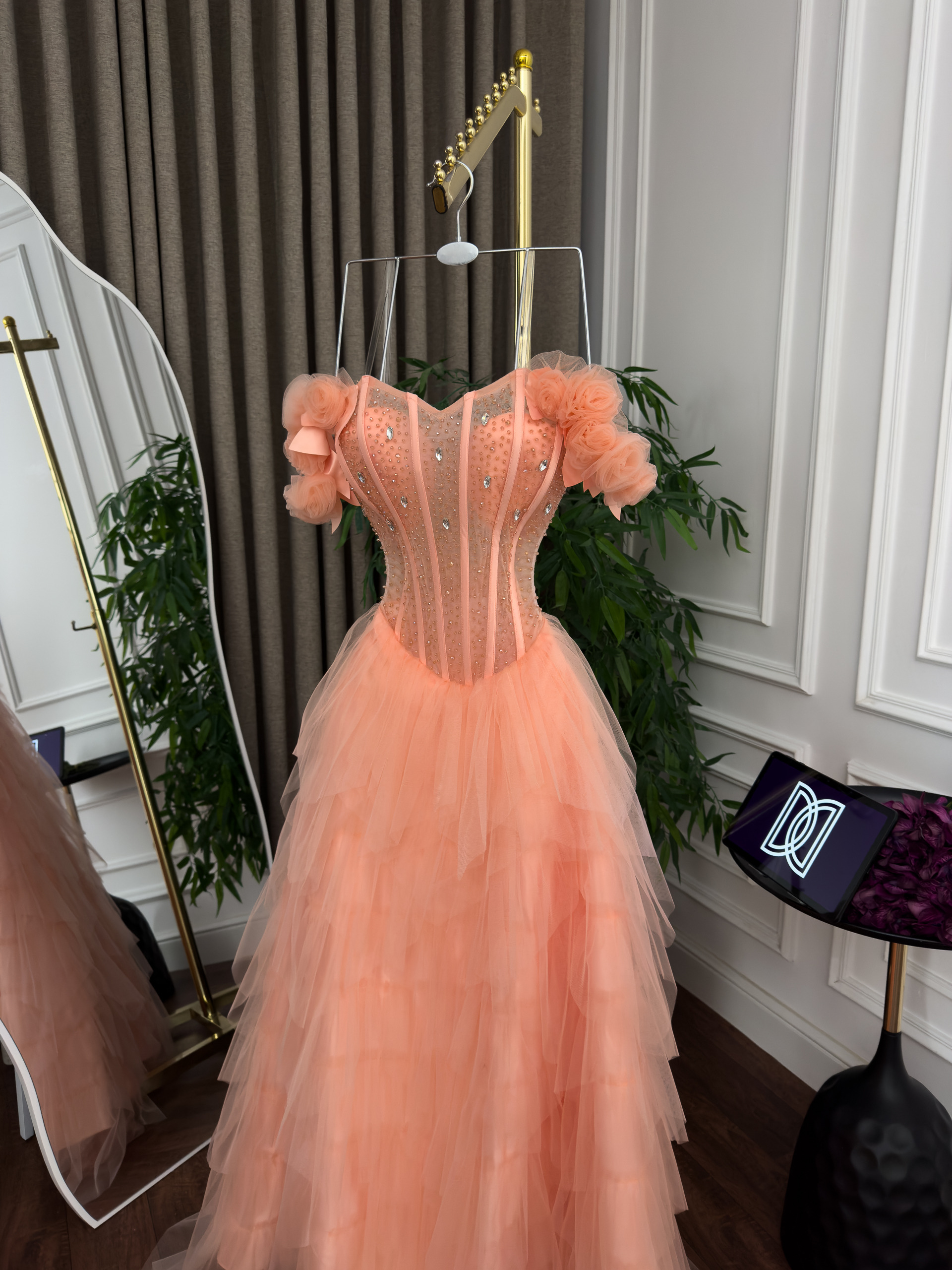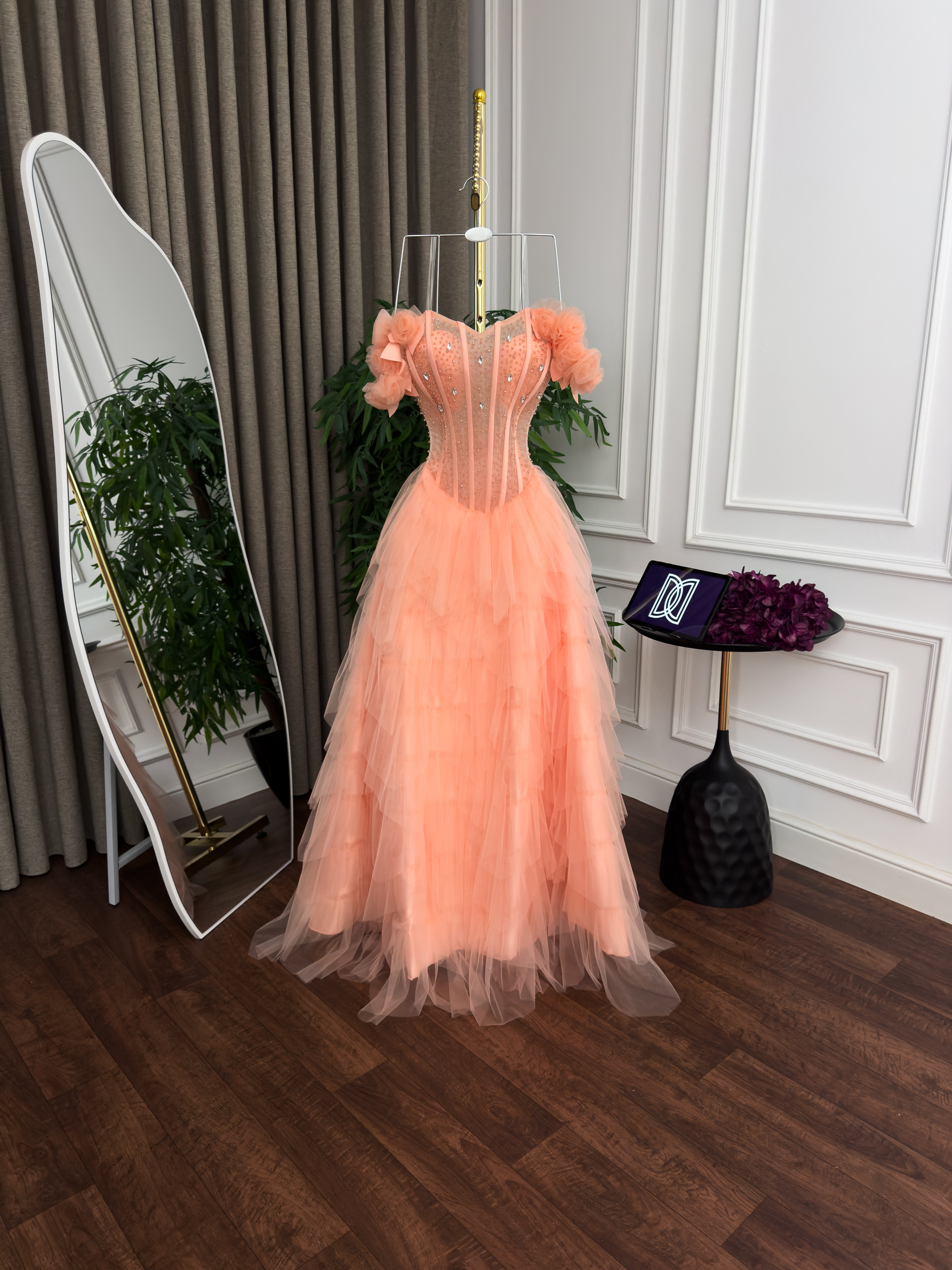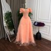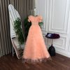 فستان سهرة خوخي كورسيه بتنورة تول