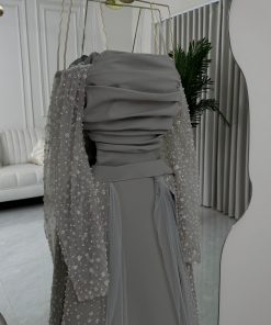 فستان سهرة رمادي فاخر من روزيتا: أناقة راقية لمناسبات لا تُنسى