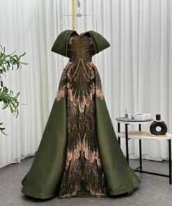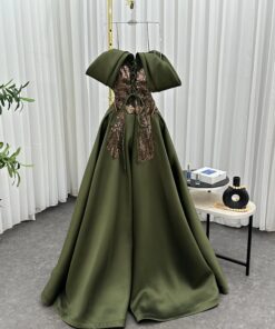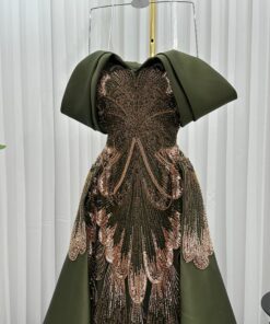 فستان سهرة زيتوني بلمسات مطرّزة تجعلك محط الأنظار