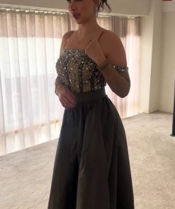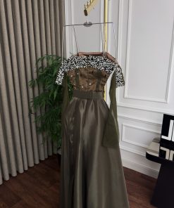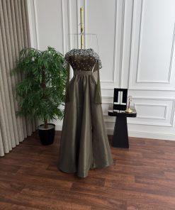 فستان سهرة زيتي أنيق من متجر روزيتا السعودية