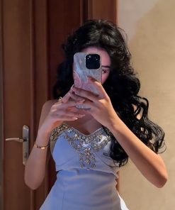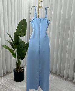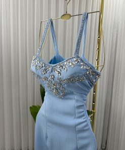 فستان سهرة سماوي بدون أكمام