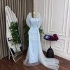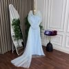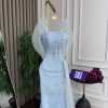 فستان سهرة سماوي مطرز بتفاصيل كريستال