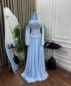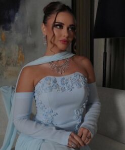 إذا كنتِ تبحثين عن فستان يعكس الأنوثة والرقي في آن واحد، فهذا الفستان السماوي الأنيق هو خيارك المثالي.