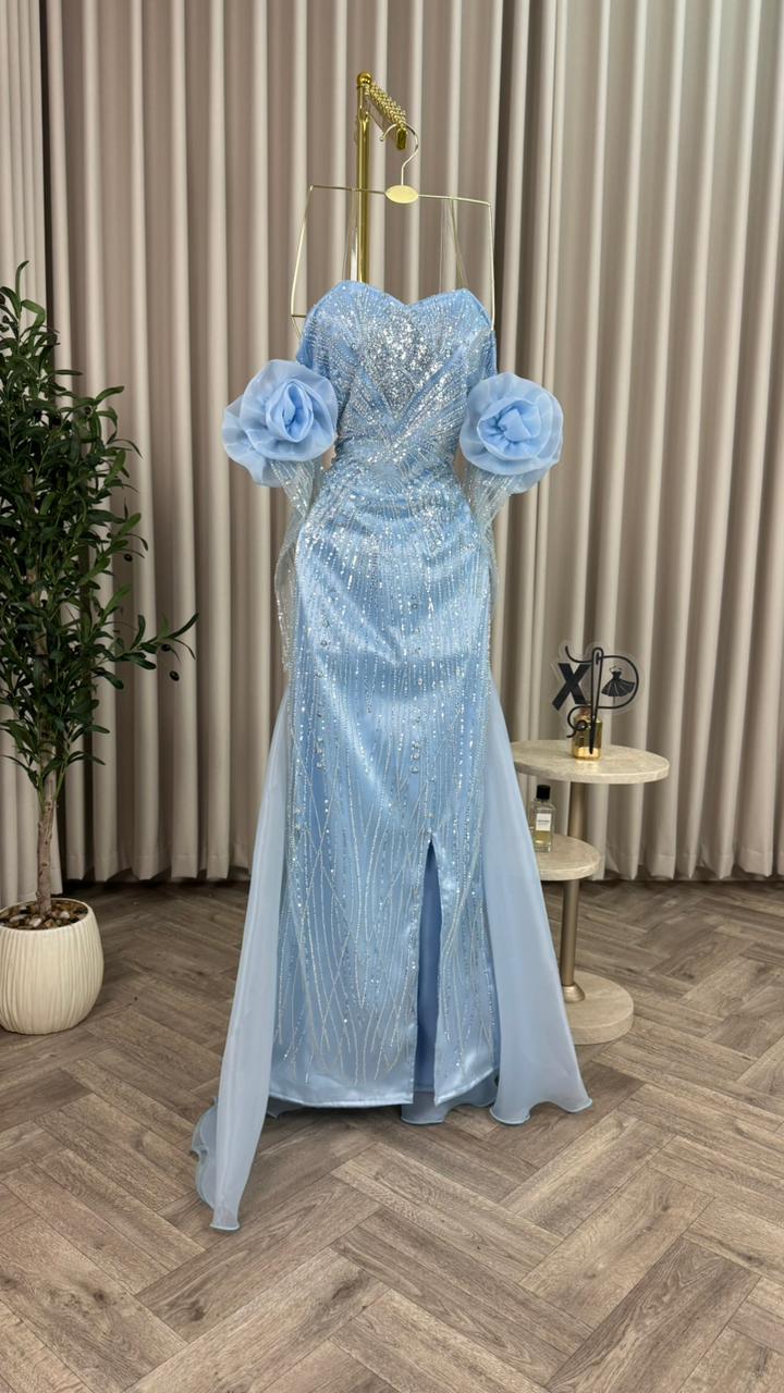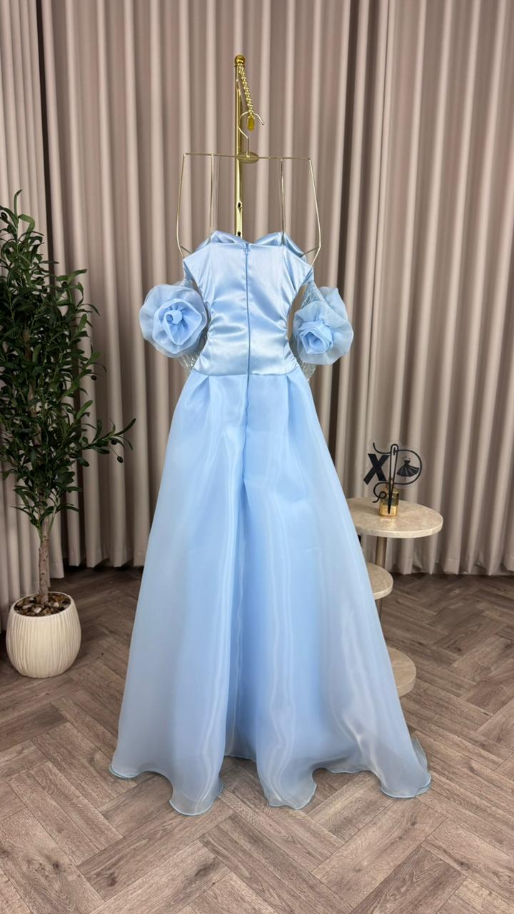 فستان سهرة سماوي فاخر من متجر روزيتا | أناقة ملكية وسحر التفاصيل