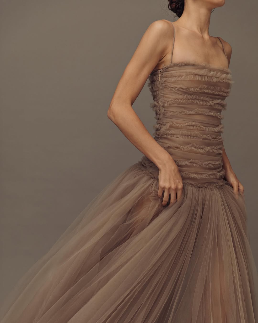 فستان سهرة بيج بتصميم راقٍ من روزيتا السعودي – فخامة هادئة وأناقة بلا حدود