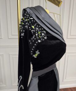 القماش: مخمل كوري اصلي درجه اولى بتطريز يدوي راقي كريستال + زركون بذيل ميكادو الخامة الاصلية