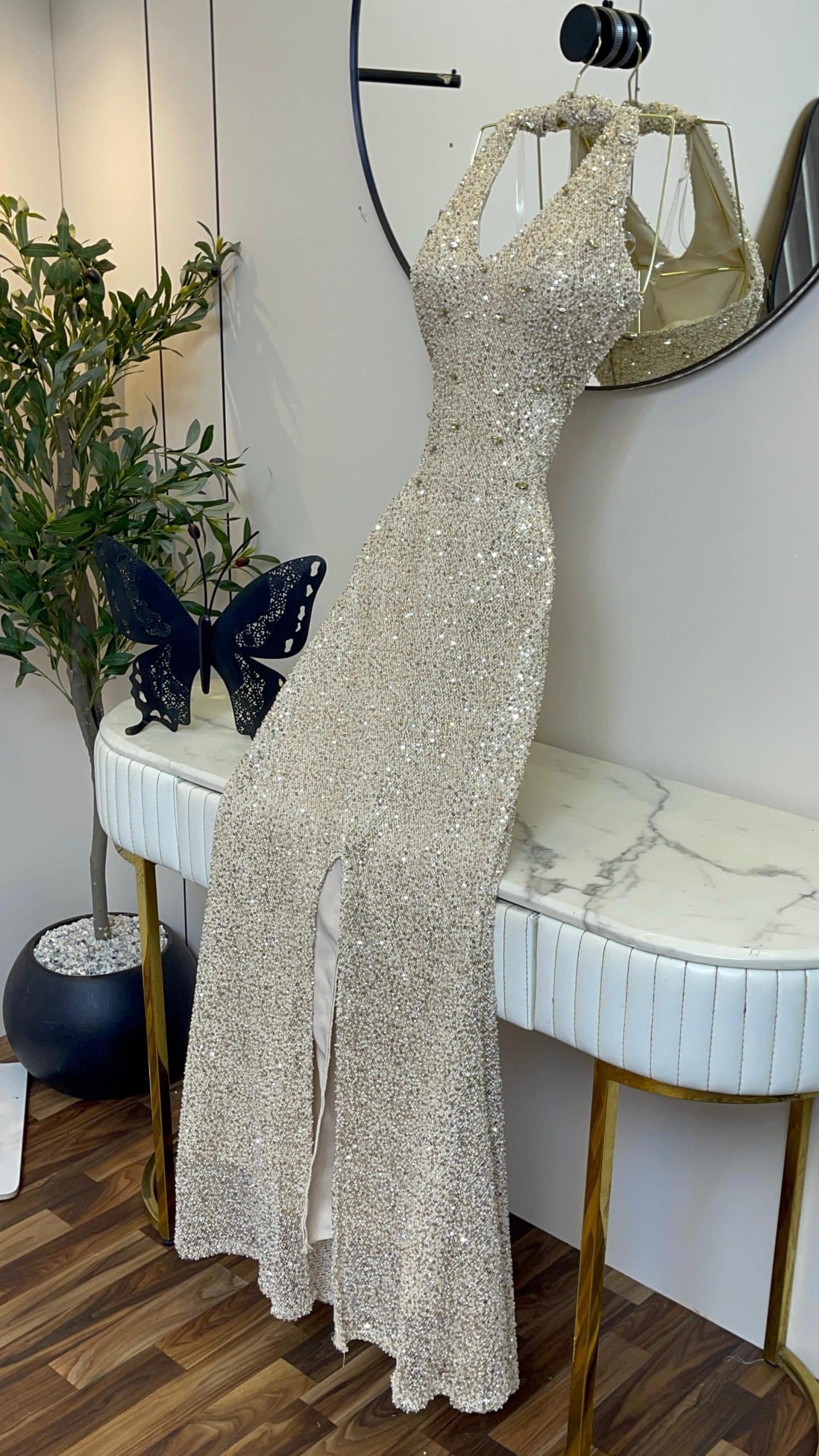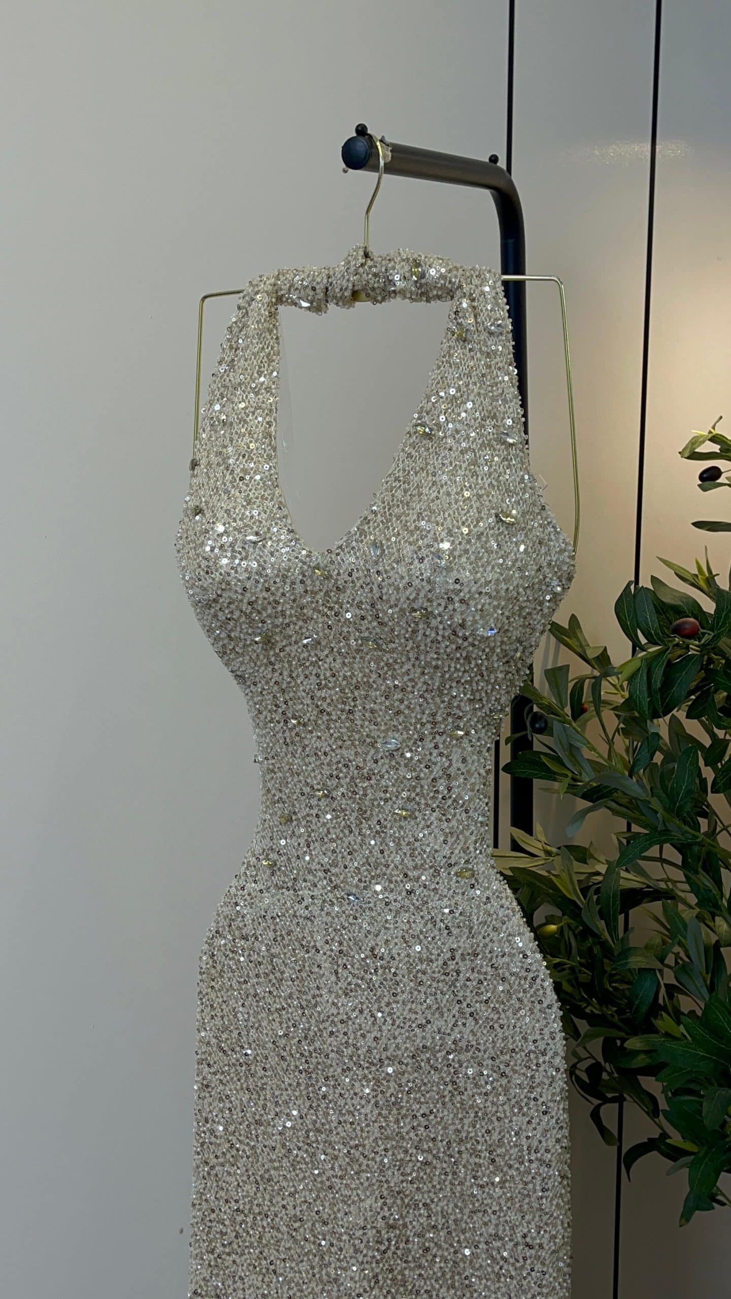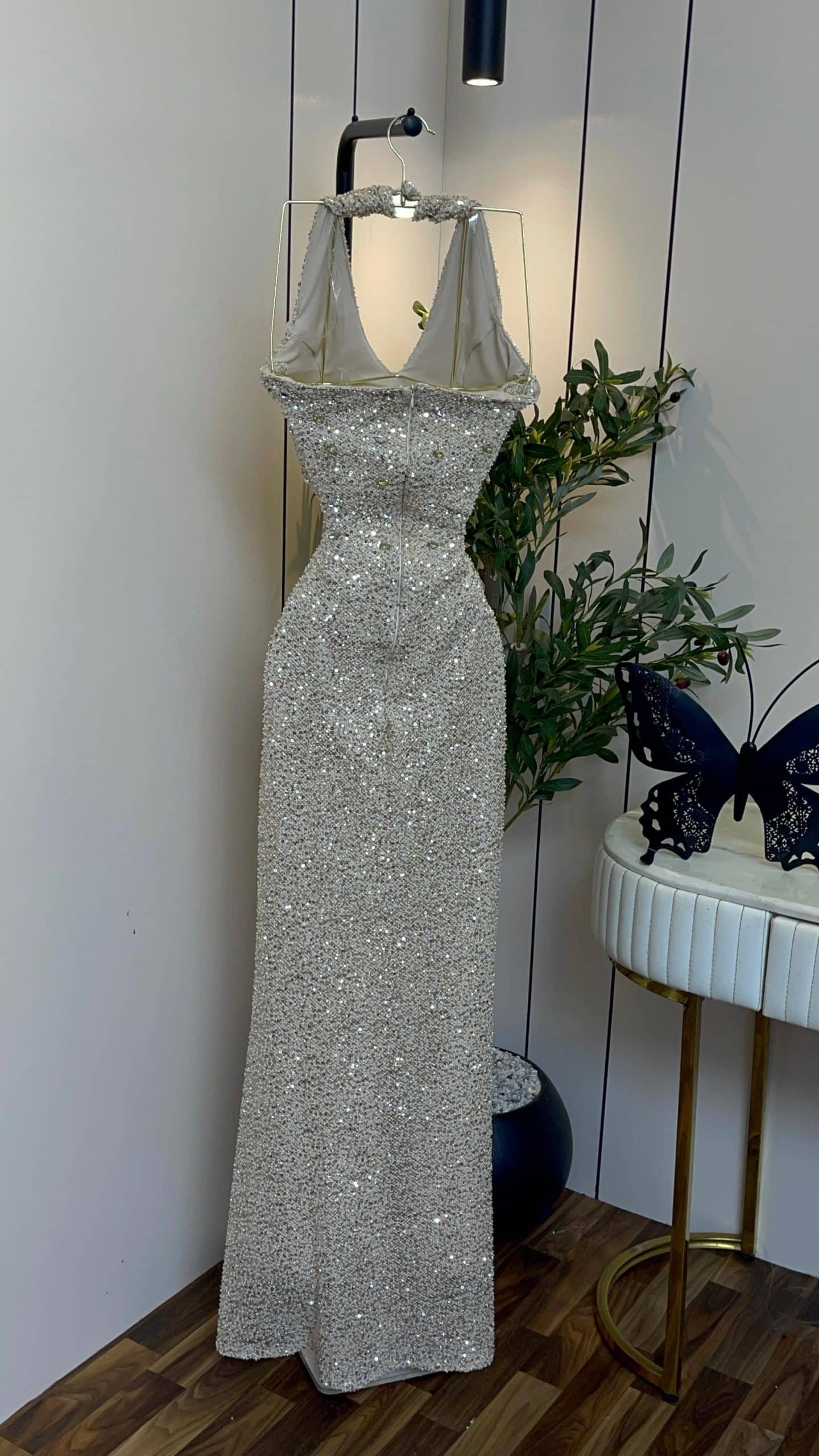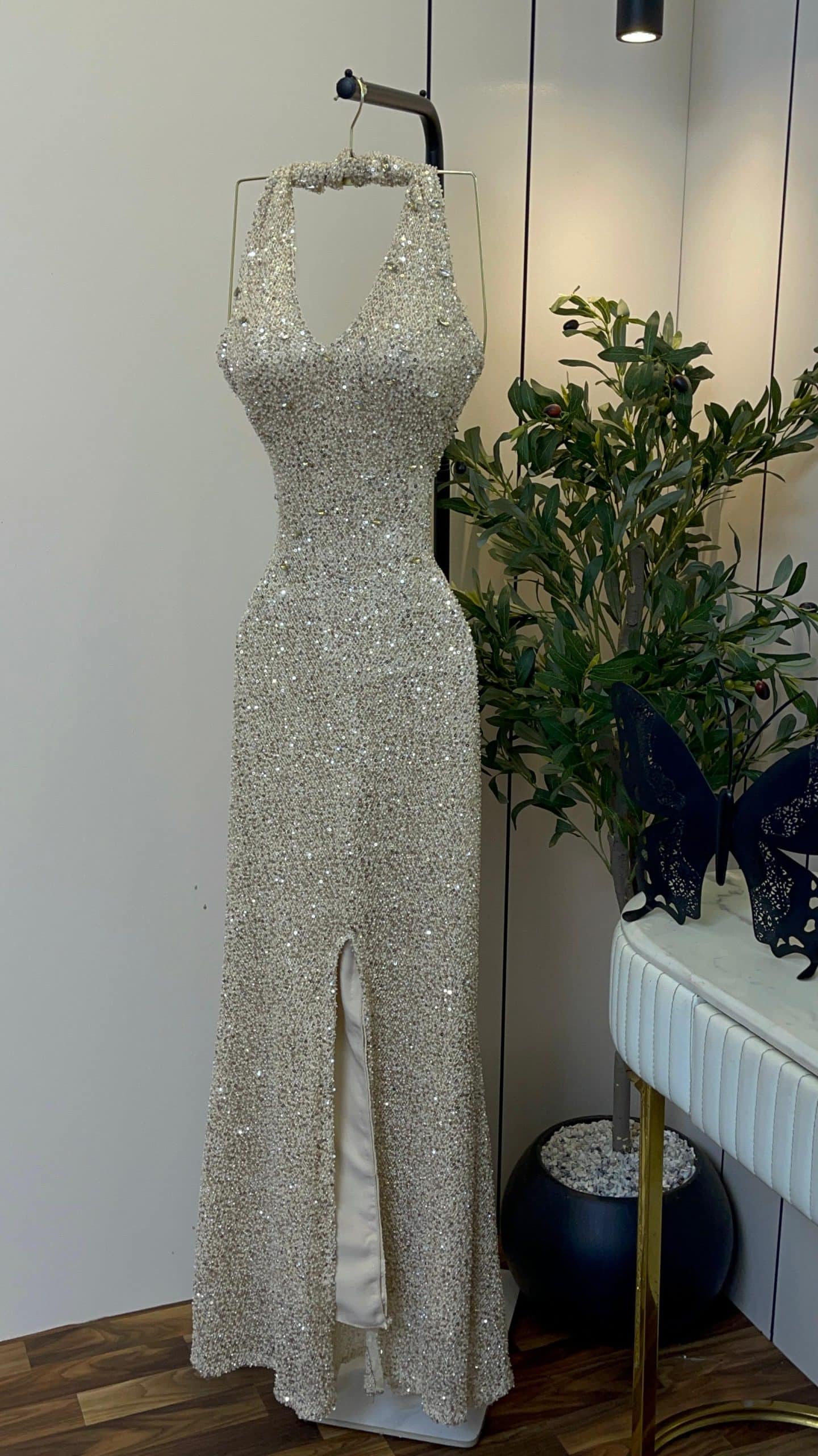 فستان سهرة طويل بتطريز فاخر للسهرة والمناسبات