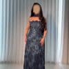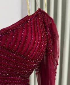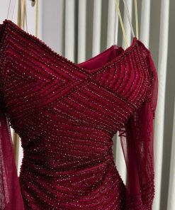 فستان سهرة طويل بتطريز لامع وأكمام شفافة